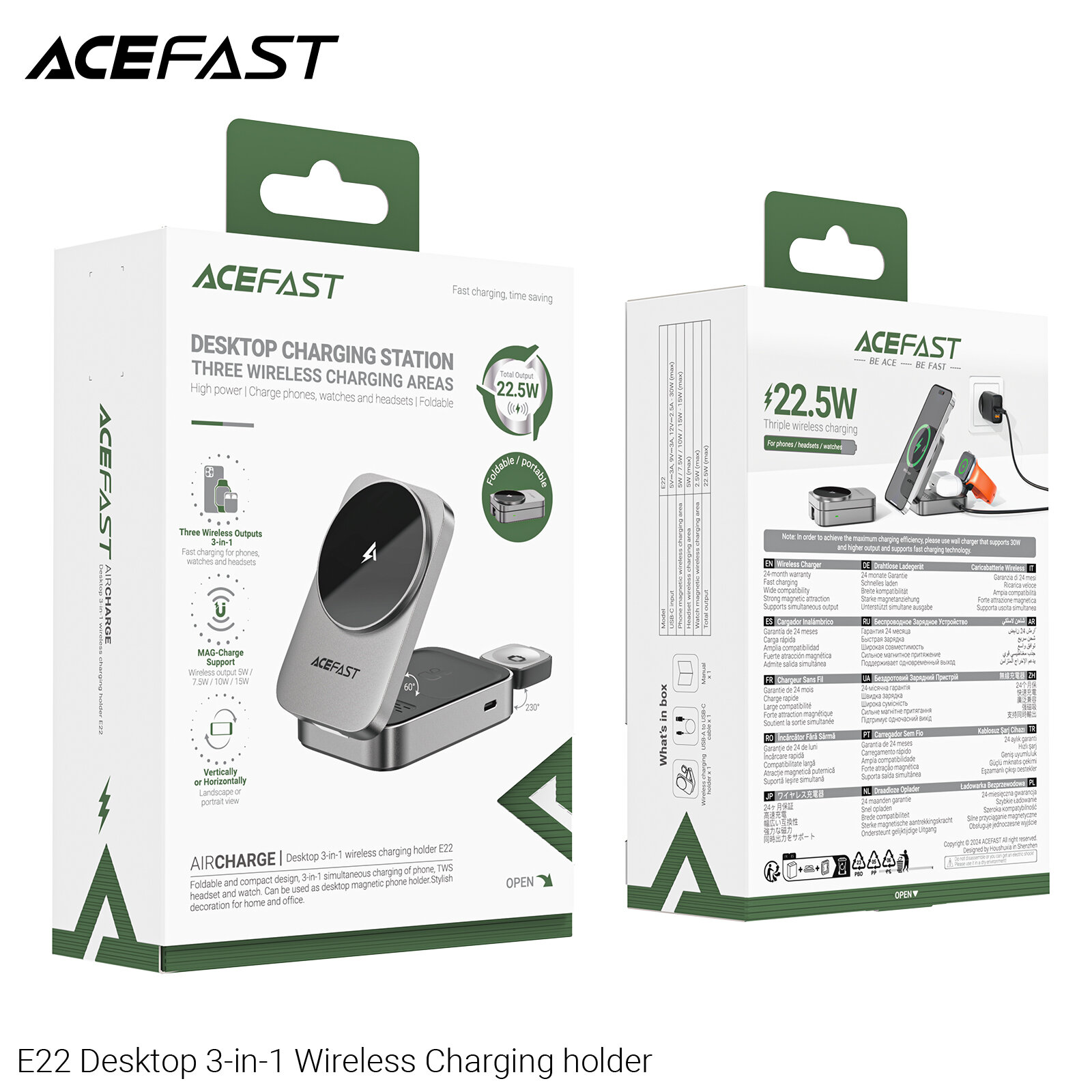 Беспроводная зарядка для IPhone ACEFAST E22 Док станция 3в1 Графитовая интересное: