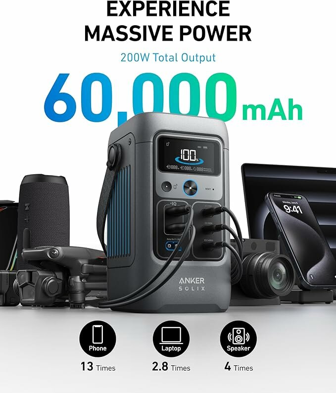 Портативная зарядная станция Anker Solix C200 60000mAh (192 Вт/ч) 200W, 5 портов интересное: