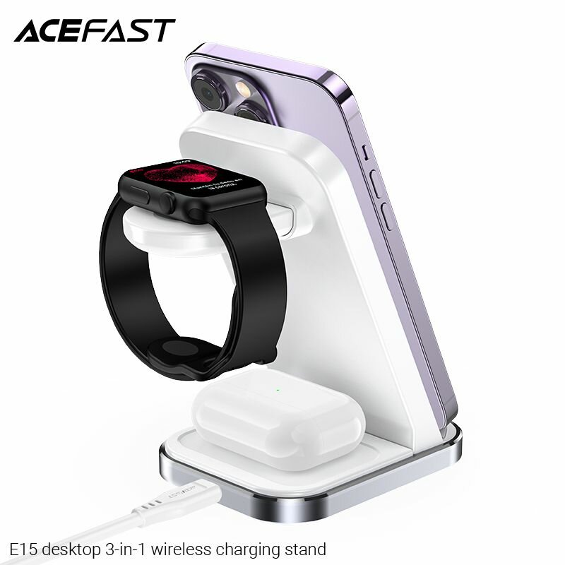 Беспроводная зарядка для IPhone ACEFAST E15 Док станция 3в1 Белая интересное:
