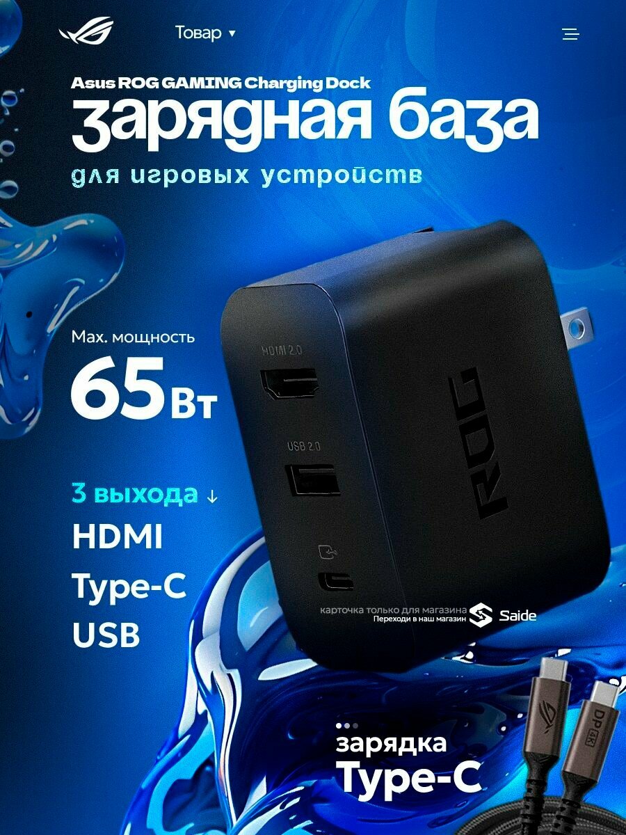 Зарядная база Asus ROG GAMING Charging Dock 65W интересное: