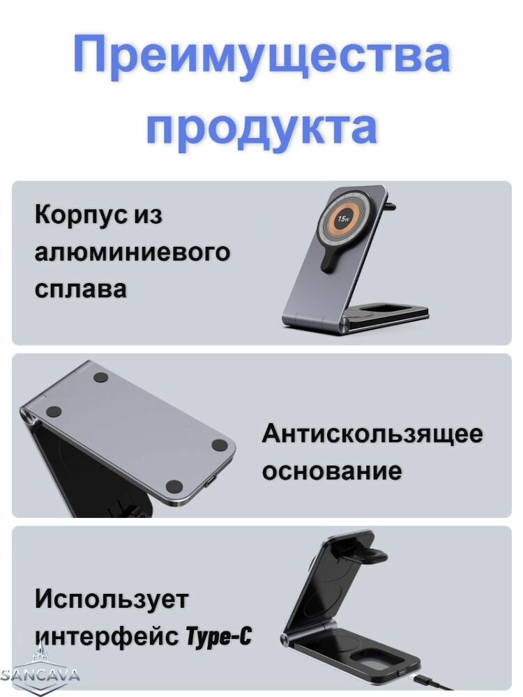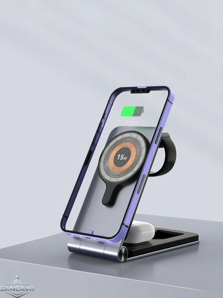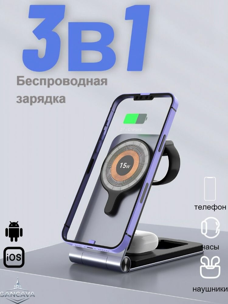 СохранитьБеспроводная зарядка для Android и iphone/Зарядная станция для Android и Apple / Док станция 3 в 1/серый интересное: