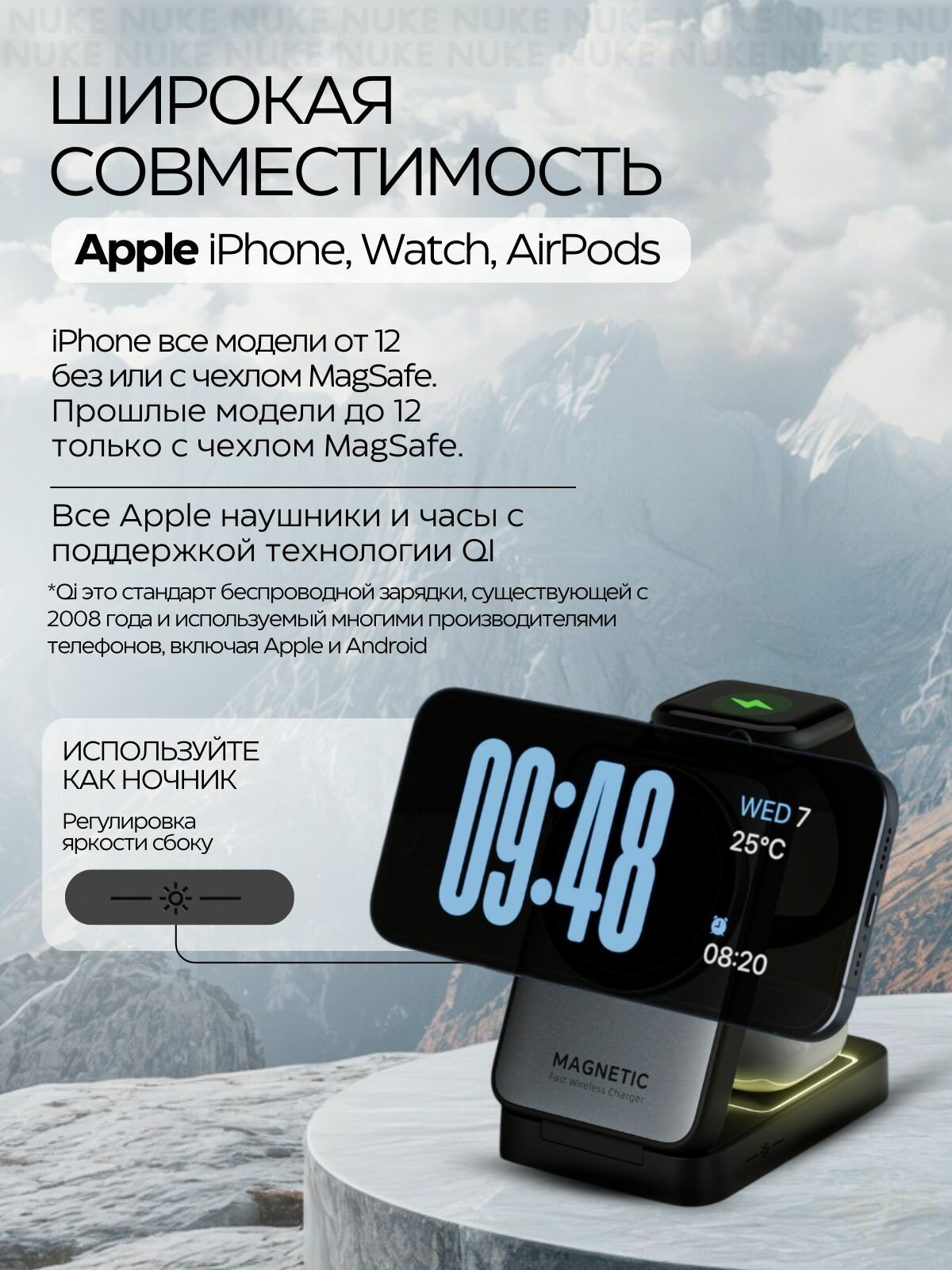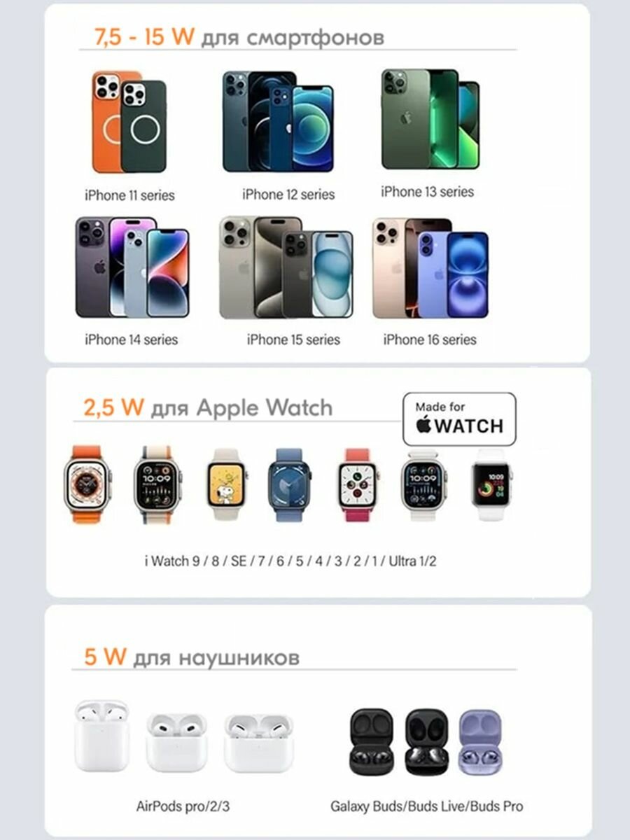 Беспроводная зарядка для iPhone и Android, зарядная станция 3 в 1 для Айфон, AirPods, Apple Watch, док-станция интересное: