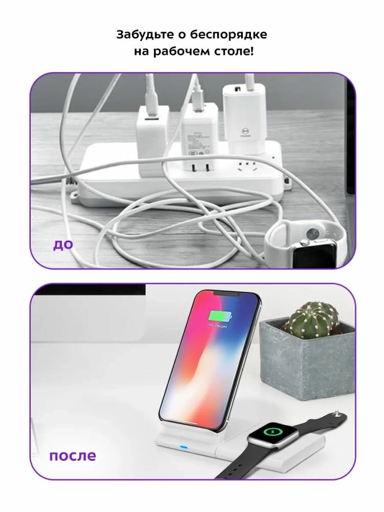 Беспроводная зарядная станция Вива Грейп КТ-3370, для часов, 15Вт, 0,8м, белая интересное: