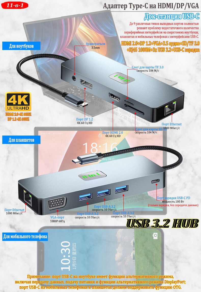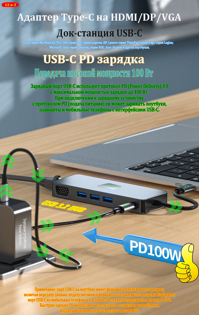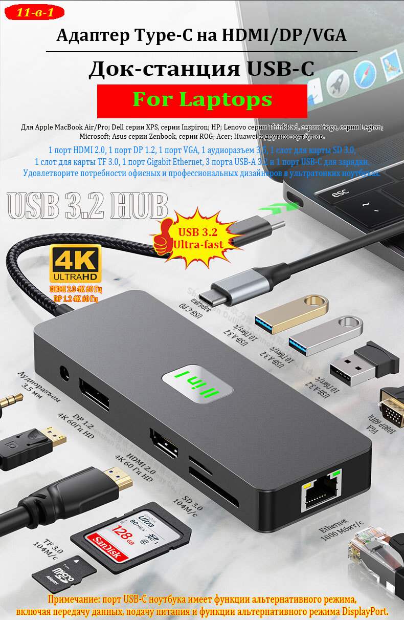 Ниже Вы можете прочитать отзывы на Адаптер USB-C на HDMI DP VGA RJ45 USB 3.2 MST HUB Thunderbolt Док-станция для ноутбука USB-C для MacBook Dell HP Lenovo, ознакомится с подробными характеристиками, посмотреть интересные обзоры и фотографии на Адаптер USB-C на HDMI DP VGA RJ45 USB 3.2 MST HUB Thunderbolt Док-станция для ноутбука USB-C для MacBook Dell HP Lenovo.