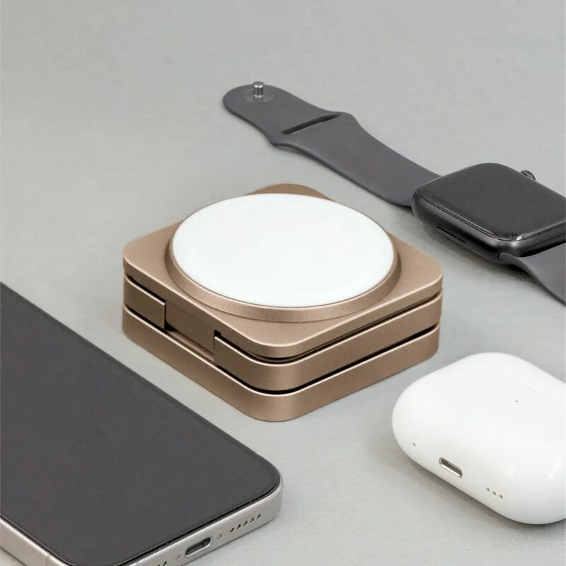 Беспроводная зарядная док-станция 3 в 1 Momax Q2. Mag Go Qi2, складная, магнитная - Sandstone (золотой)