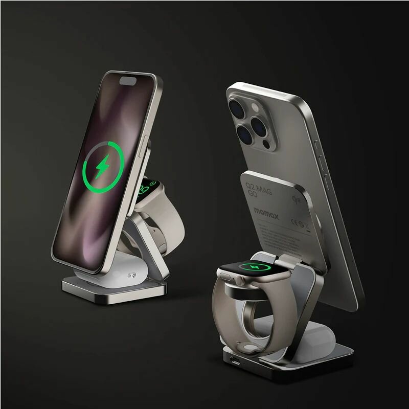 Беспроводная зарядная док-станция 3 в 1 Momax Q2. Mag Go Qi2, складная, магнитная - Titanium интересное: