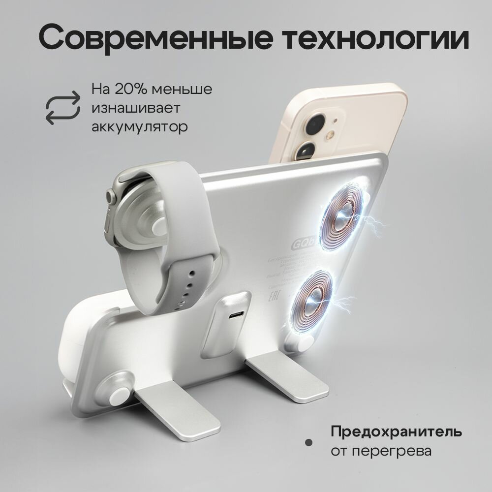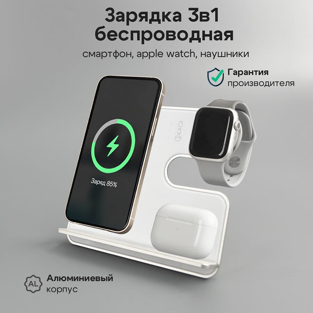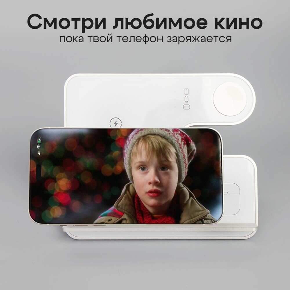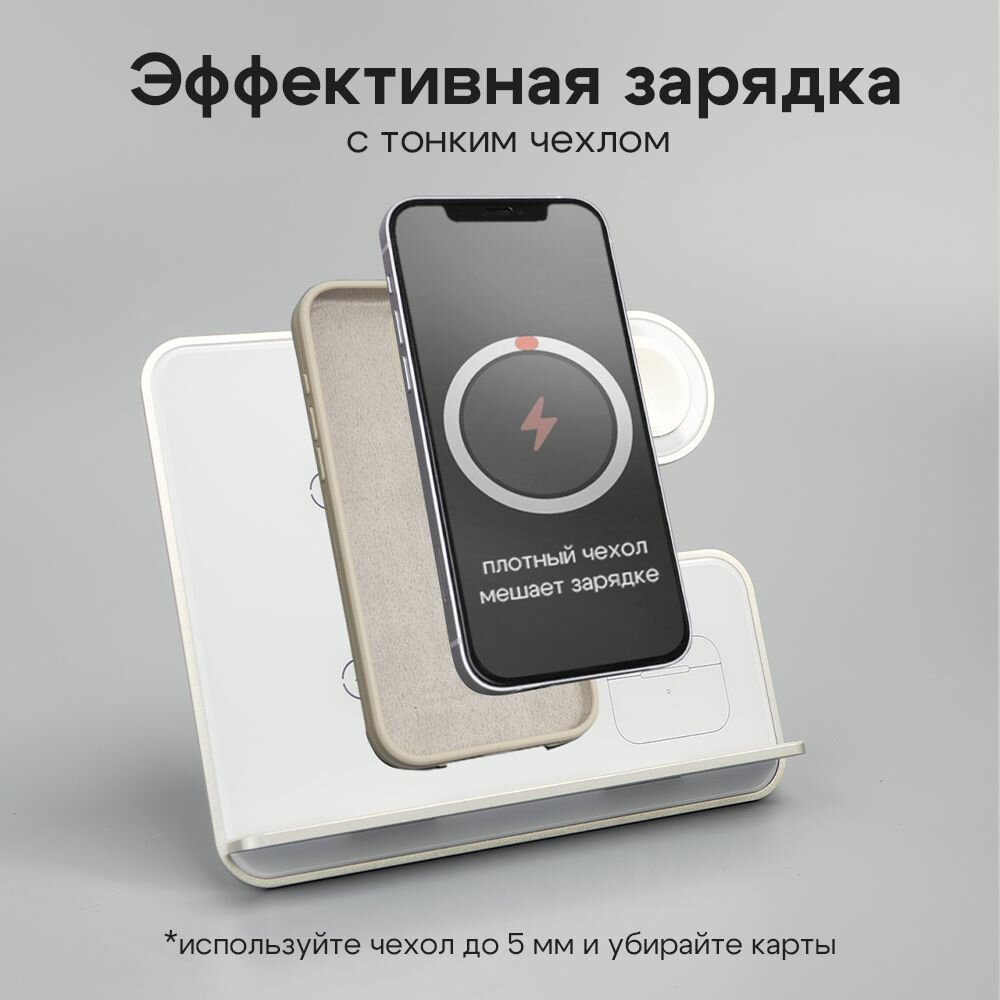 Беспроводная зарядка для iPhone / Зapядка / Док станция 3в1 для iPhone / Быстрая зарядка / Белый интересное: