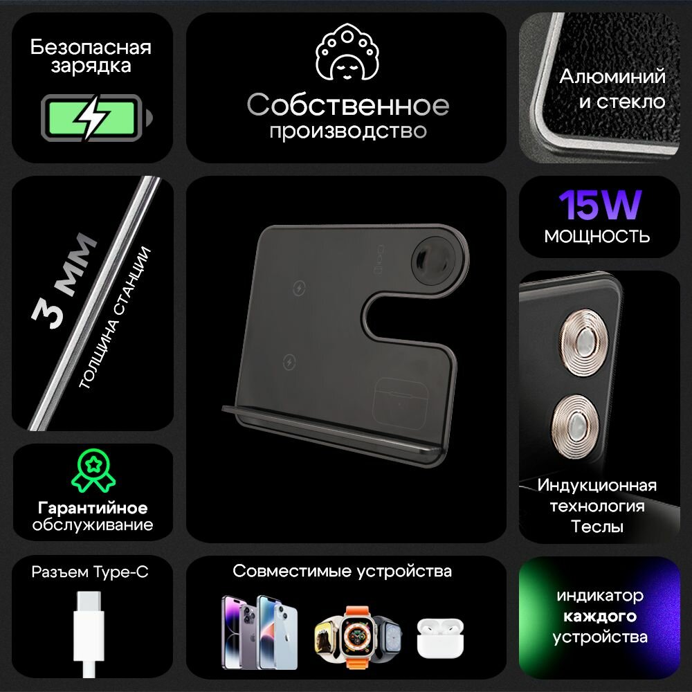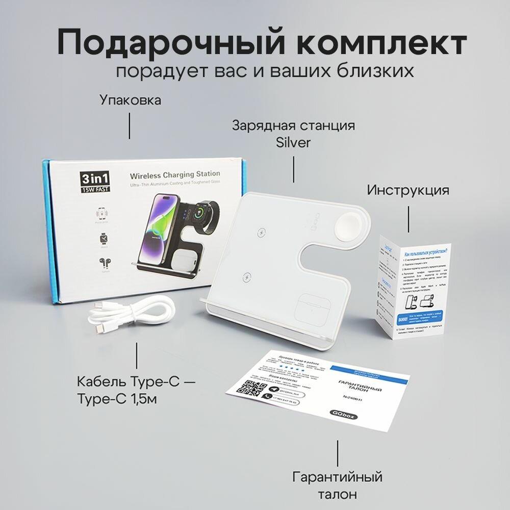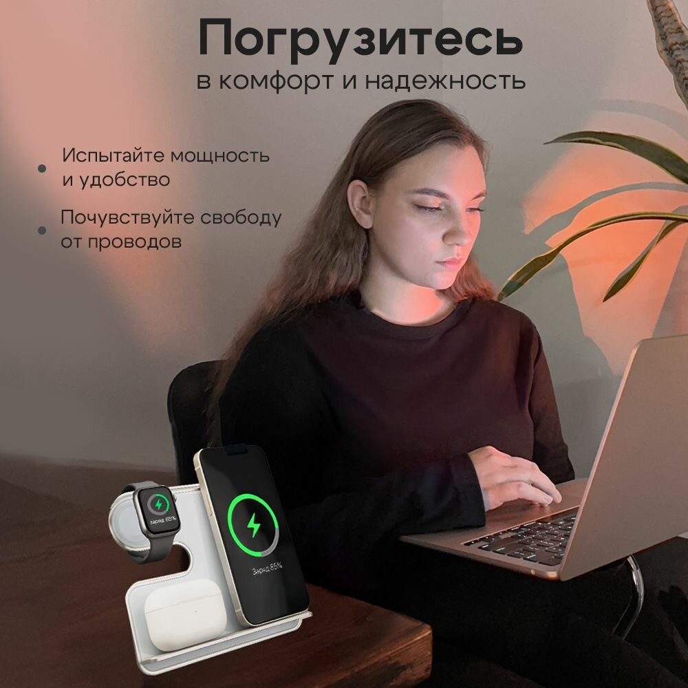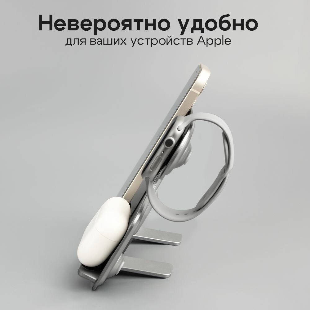 Беспроводная зарядка для iPhone / Зapядка / Док станция 3в1 для iPhone / Быстрая зарядка / Белый интересное: