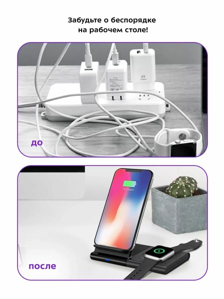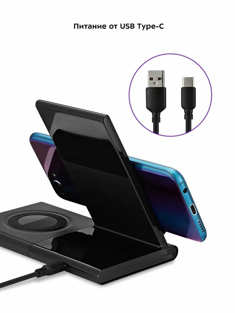 Беспроводная зарядная станция "Вива Грейп" КТ-3370, для часов, 15Вт, черная интересное: