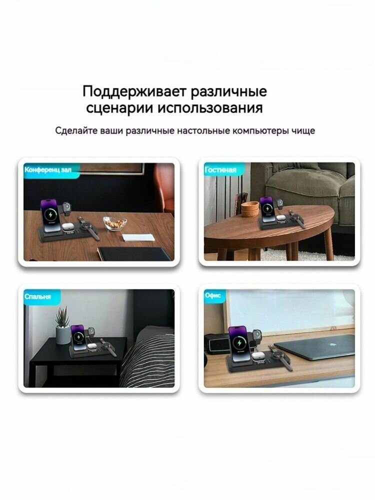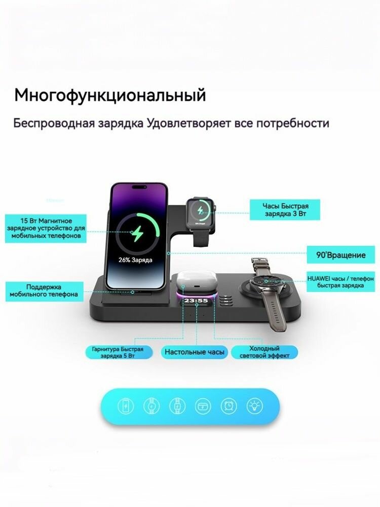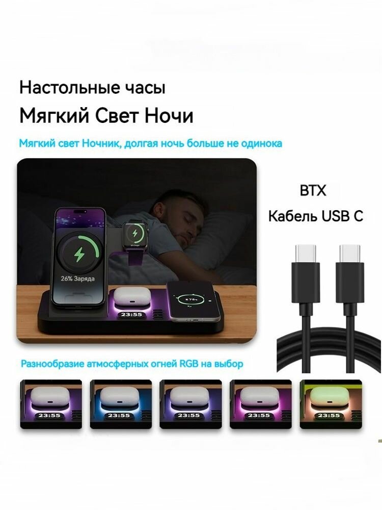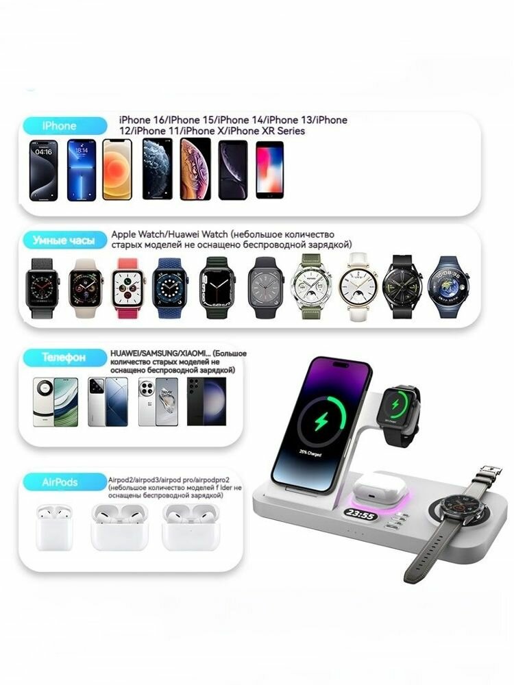Беспроводная зарядная станция 6 в одном с Часы RGB Light для телефонов Apple , Apple Watch и Airpods Pro интересное: