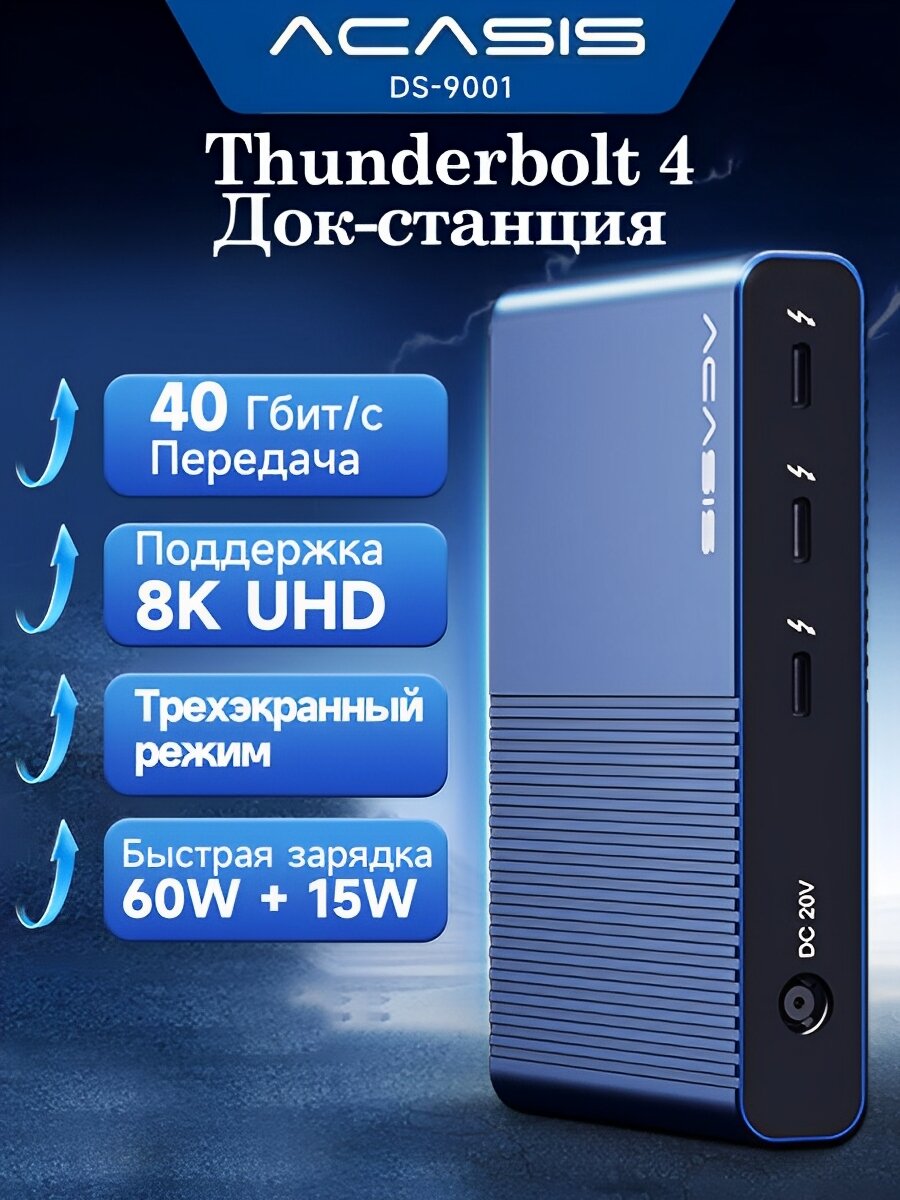Док-станция ACASIS DS-9001 Thunderbolt 4 (6 в 1) 40Gbps 8K Intel Certified Для MacBook M4 интересное: