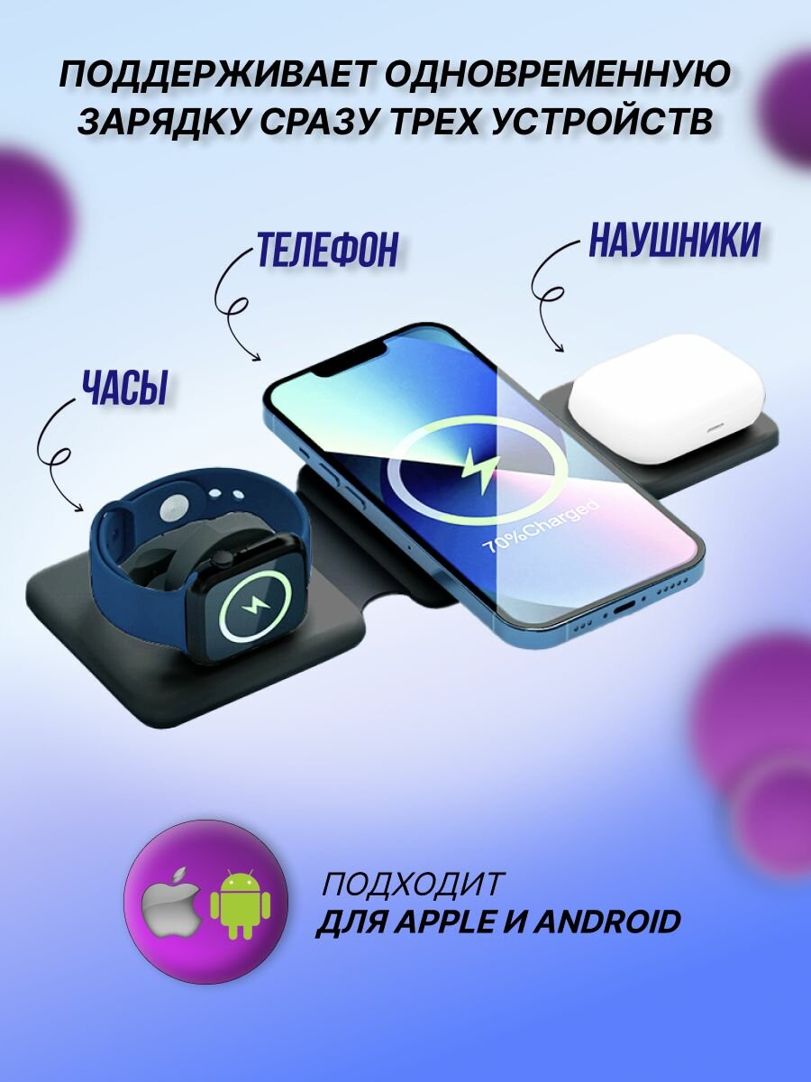 Док-станция Holy Way, беспроводная, 3 в 1, для телефона, USB Type-C, черная интересное: