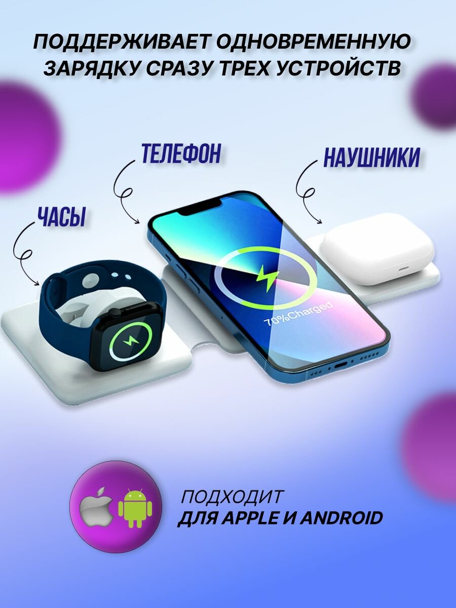 Беспроводное зарядное устройство Holy Way 3-in-1, для телефона, USB Type-C, белое интересное:
