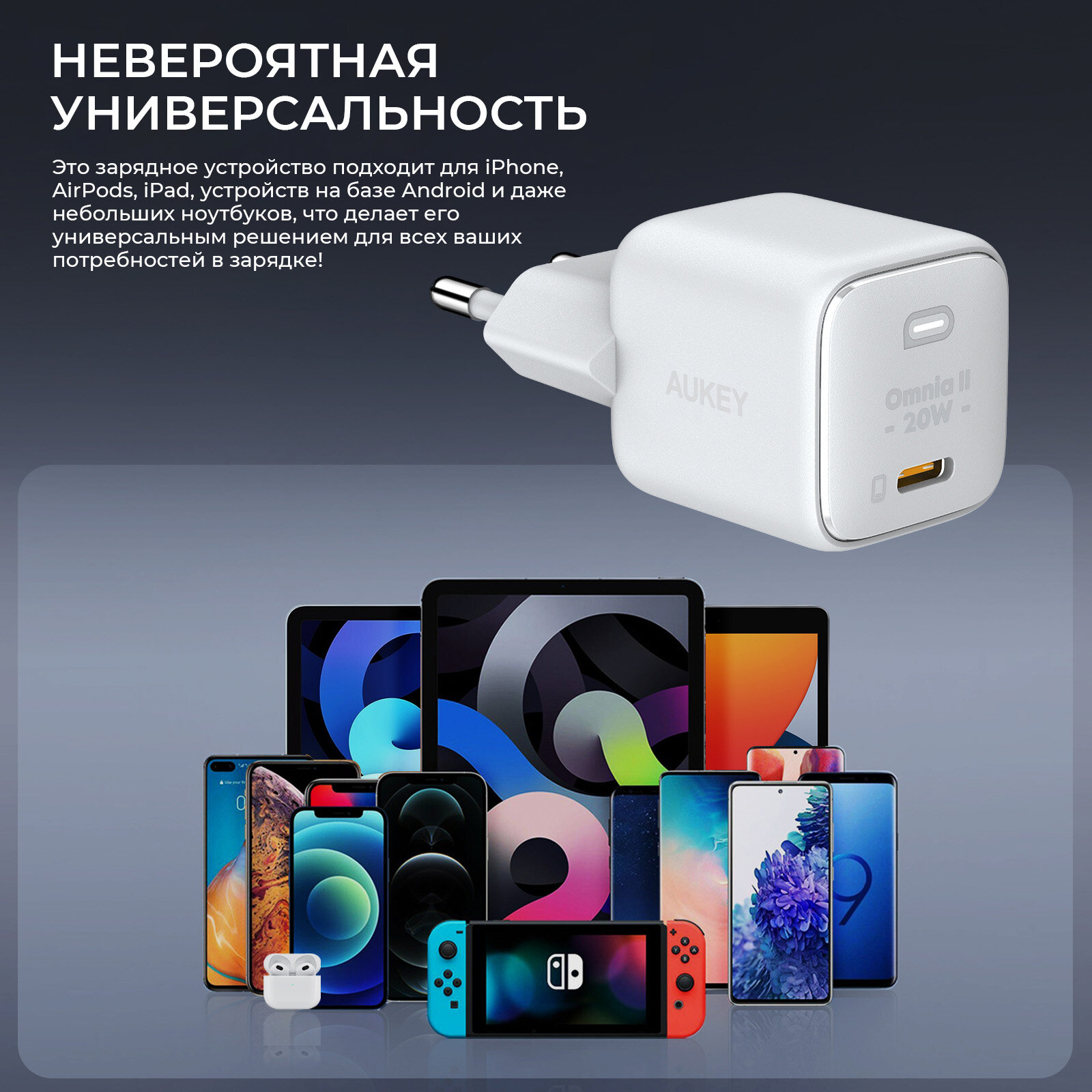 Сетевое зарядное устройство Aukey, Omnia 2, USB-C, 20 Вт, белый (PA-B1T) интересное:
