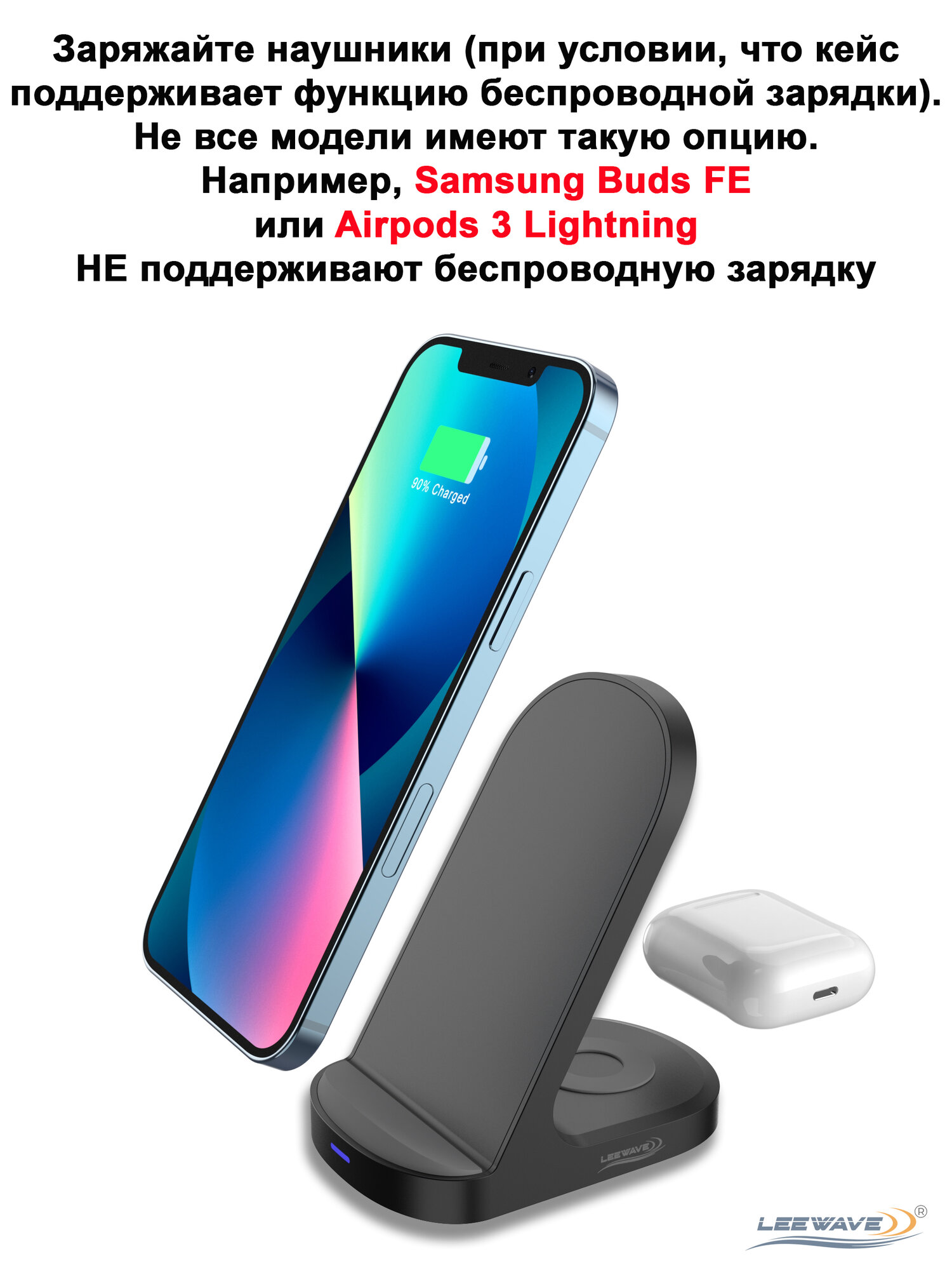 Беспроводная зарядка - подставка 2 в 1 для Android и iPhone, для смартфона и наушников. Черная интересное: