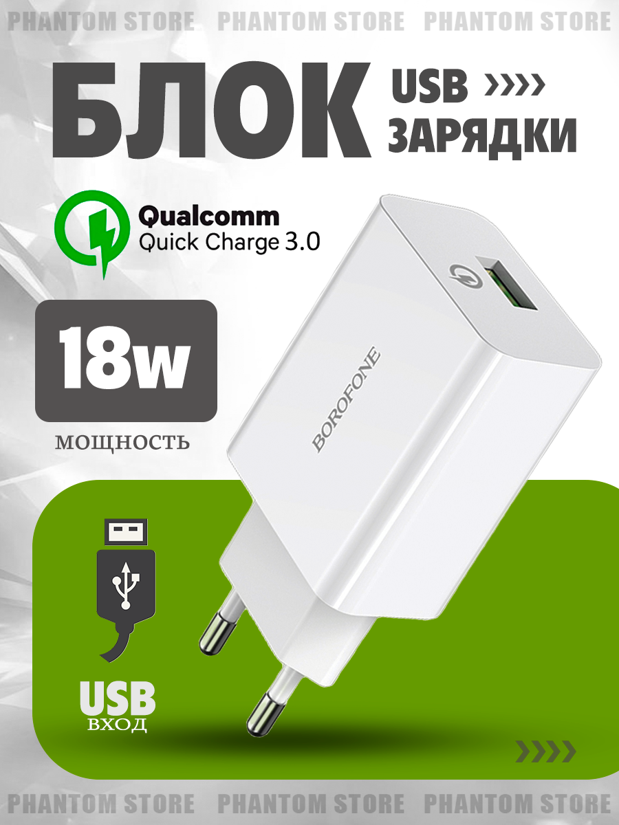 Зарядное устройство для телефона адаптер 18W - 18 вт ( Быстрая зарядка без кабеля) за 30 минут 50% интересное: