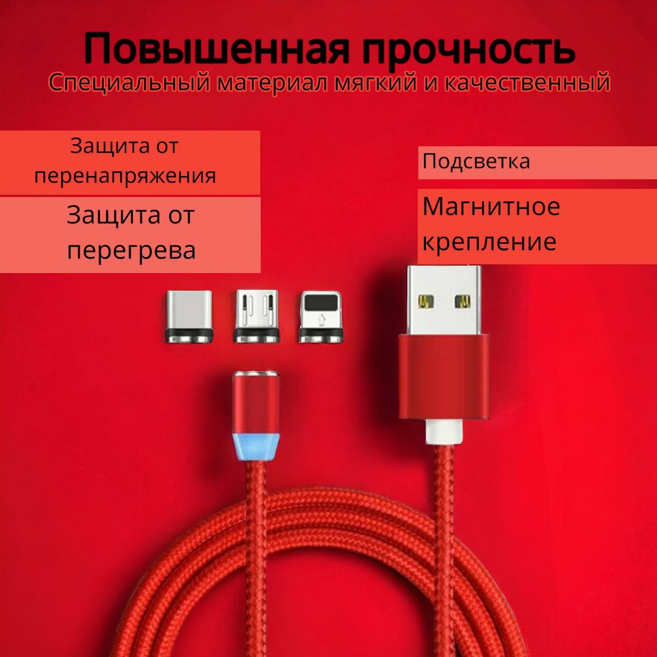 Магнитный зарядный кабель AOCV USB Type-C, Lightning, MicroUSB, 1 м, красный интересное: