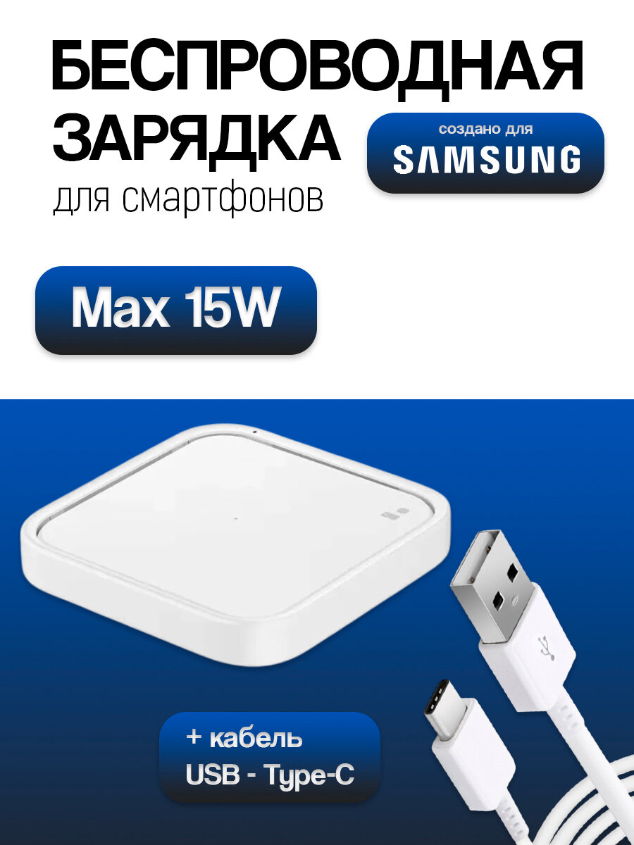 Беспроводное зарядное устройство для Samsung (EP-P2400) 15W с кабелем USB-Type-C белый интересное: