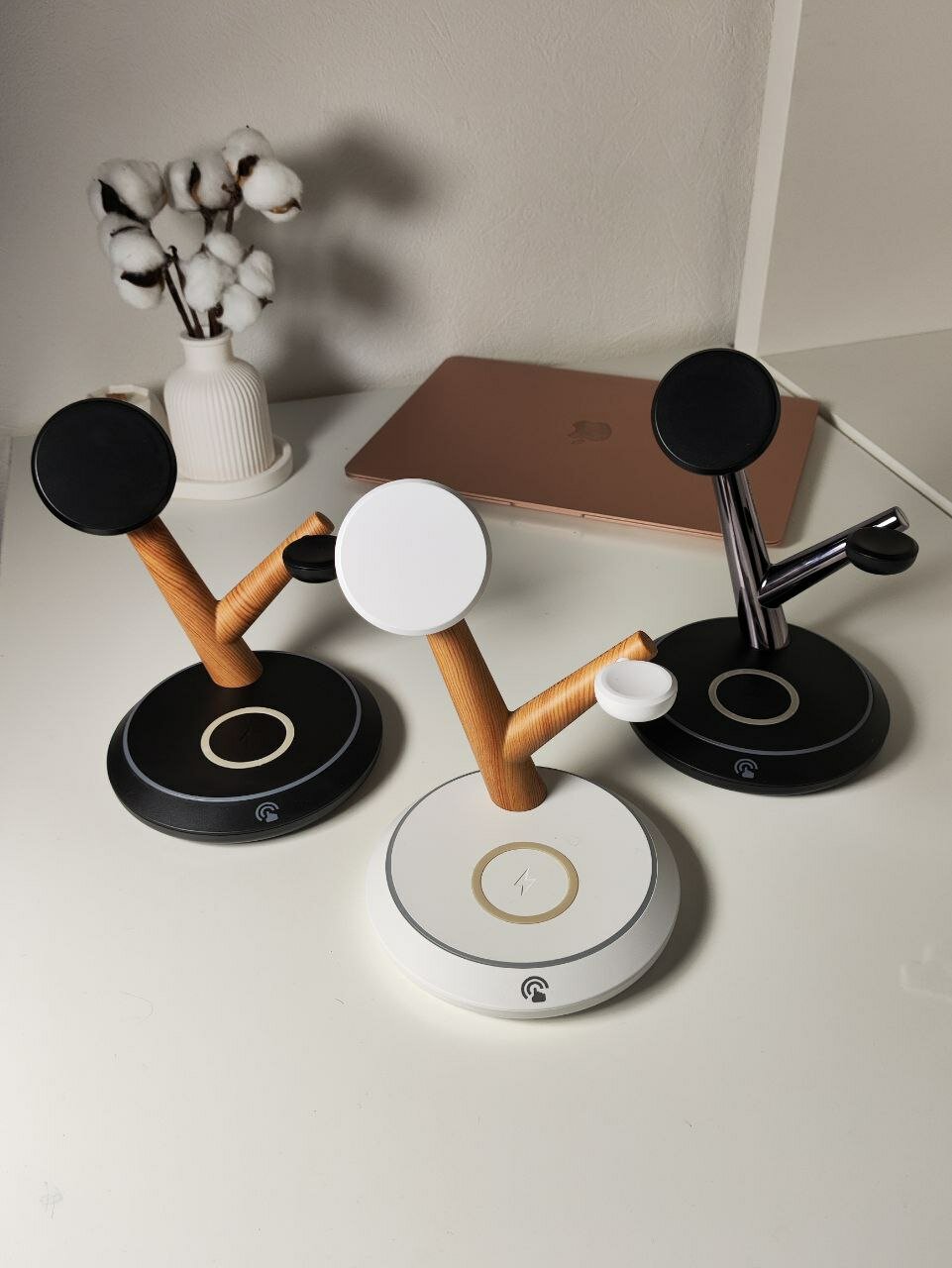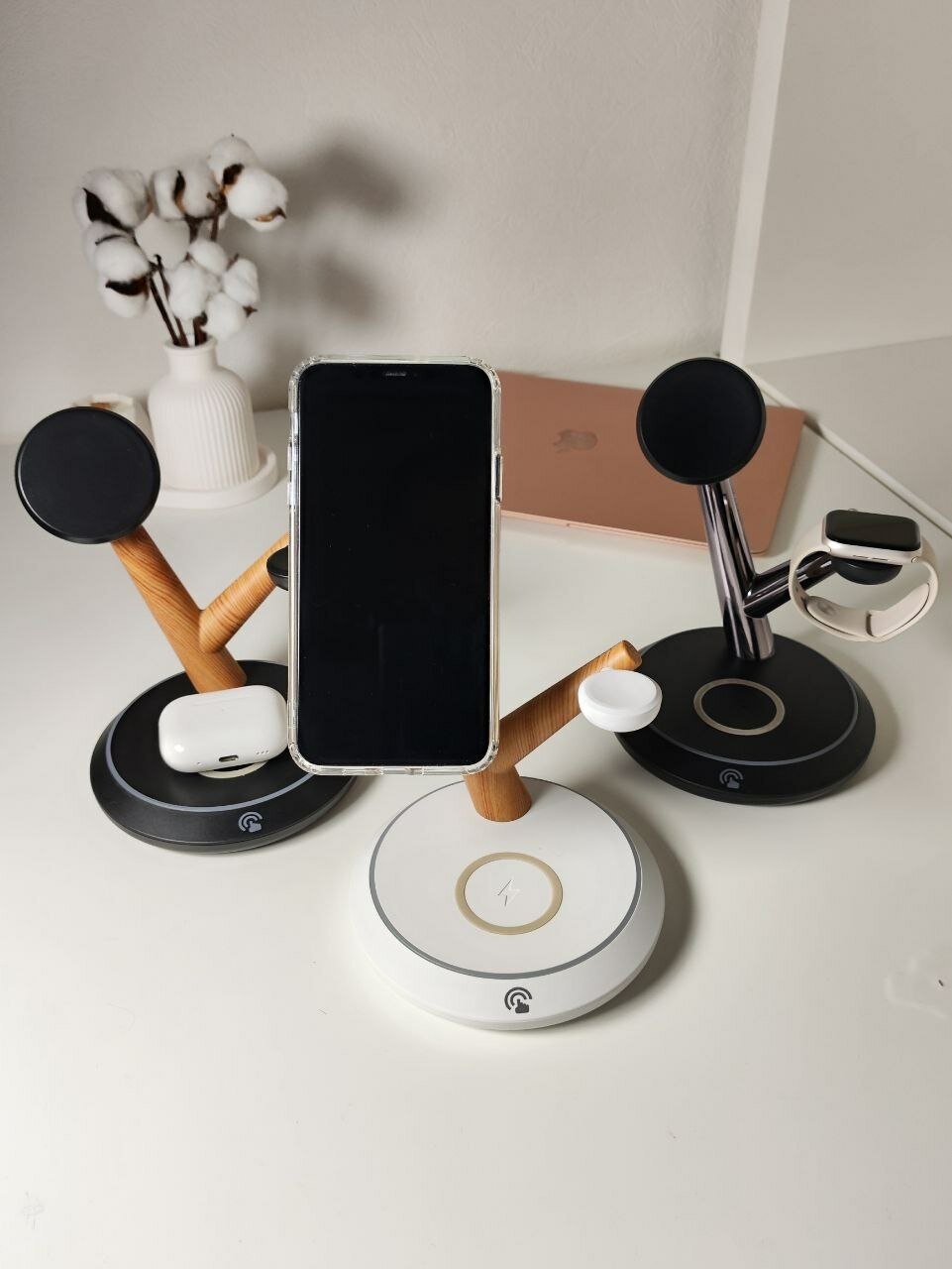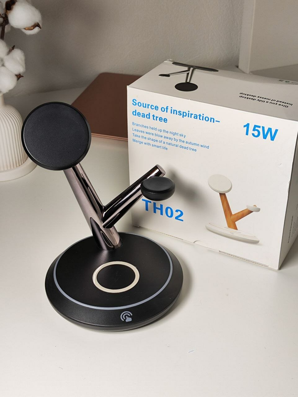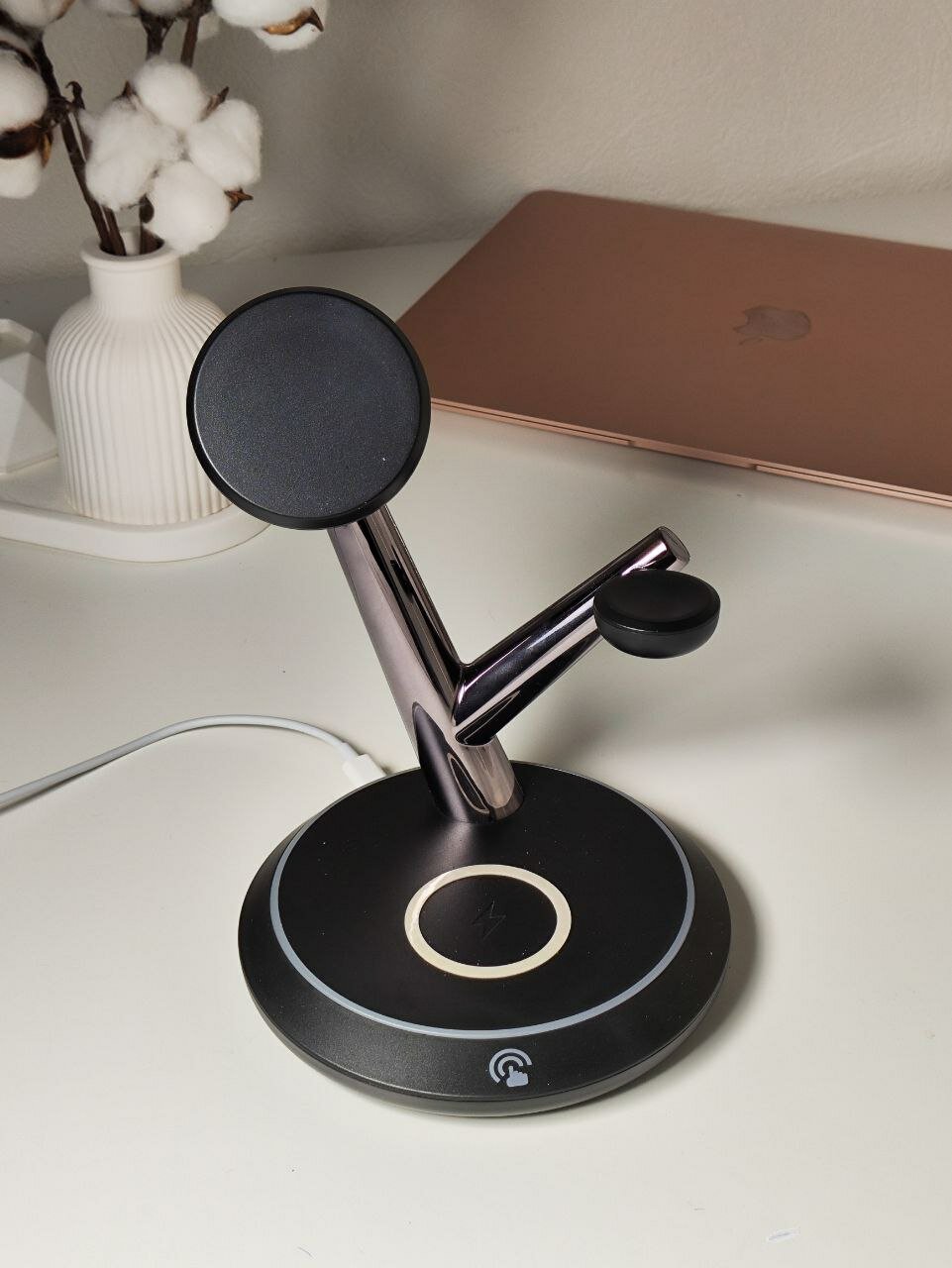 Беспроводная зарядка 3 в 1 для iPhone и Android Qi, док станция TH02 черно-серебристая magsafe интересное: