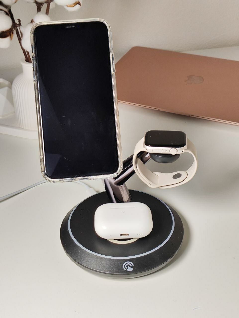 Беспроводная зарядка 3 в 1 для iPhone и Android Qi, док станция TH02 черная magsafe