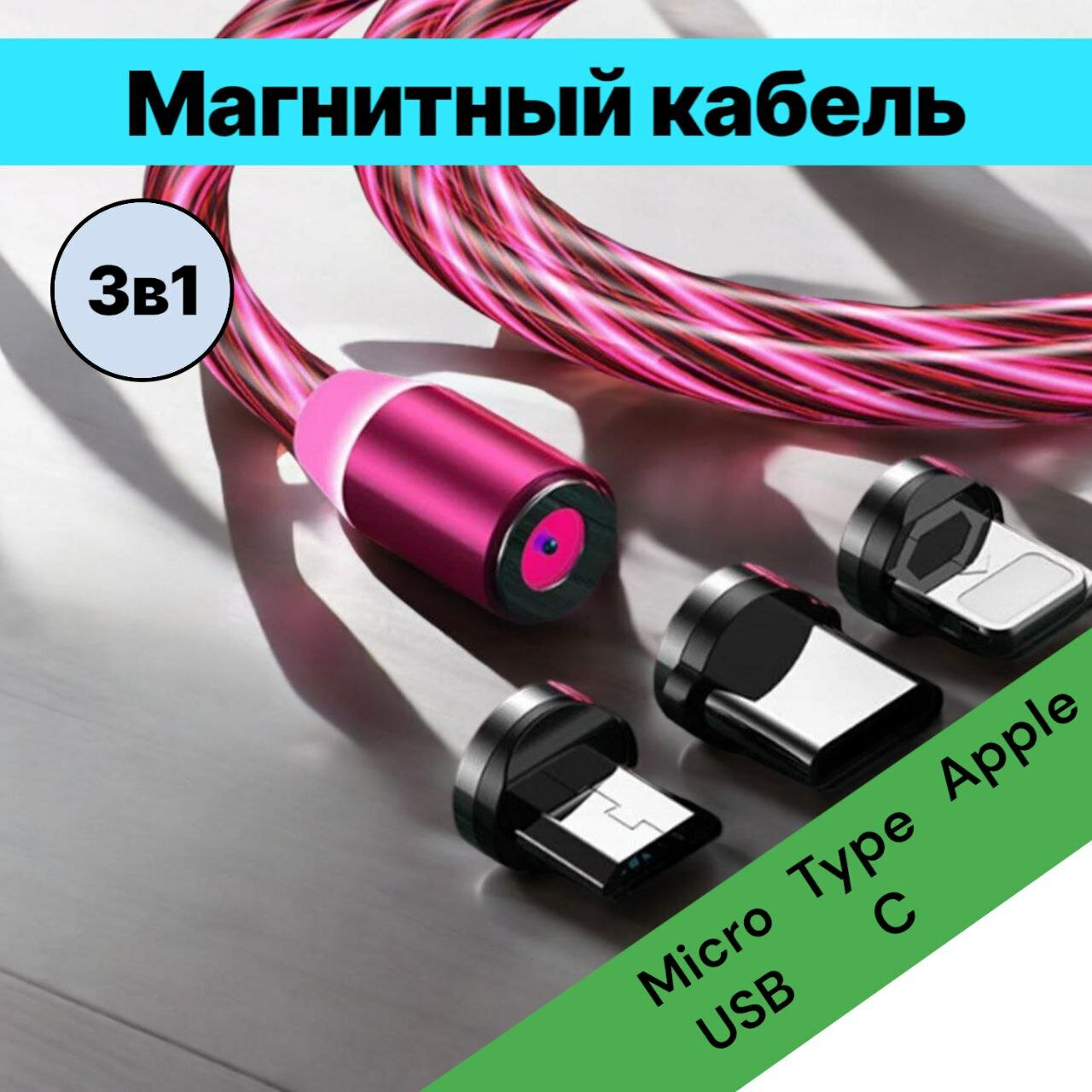 Кабель для мобильных устройств AOCV с магнитным разъемом, зеленый