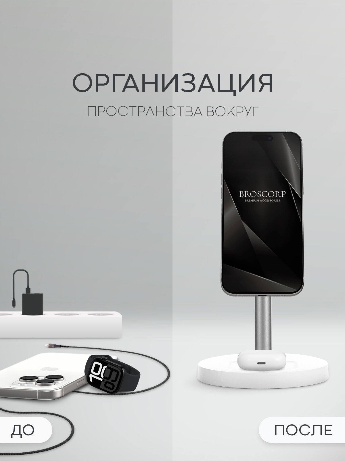 Беспроводная зарядка iPhone MagSafe 3 в 1, бренд Broscorp, белая интересное: