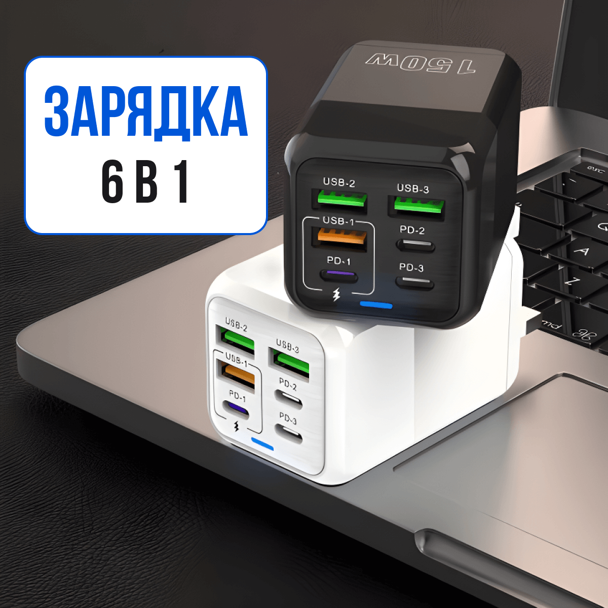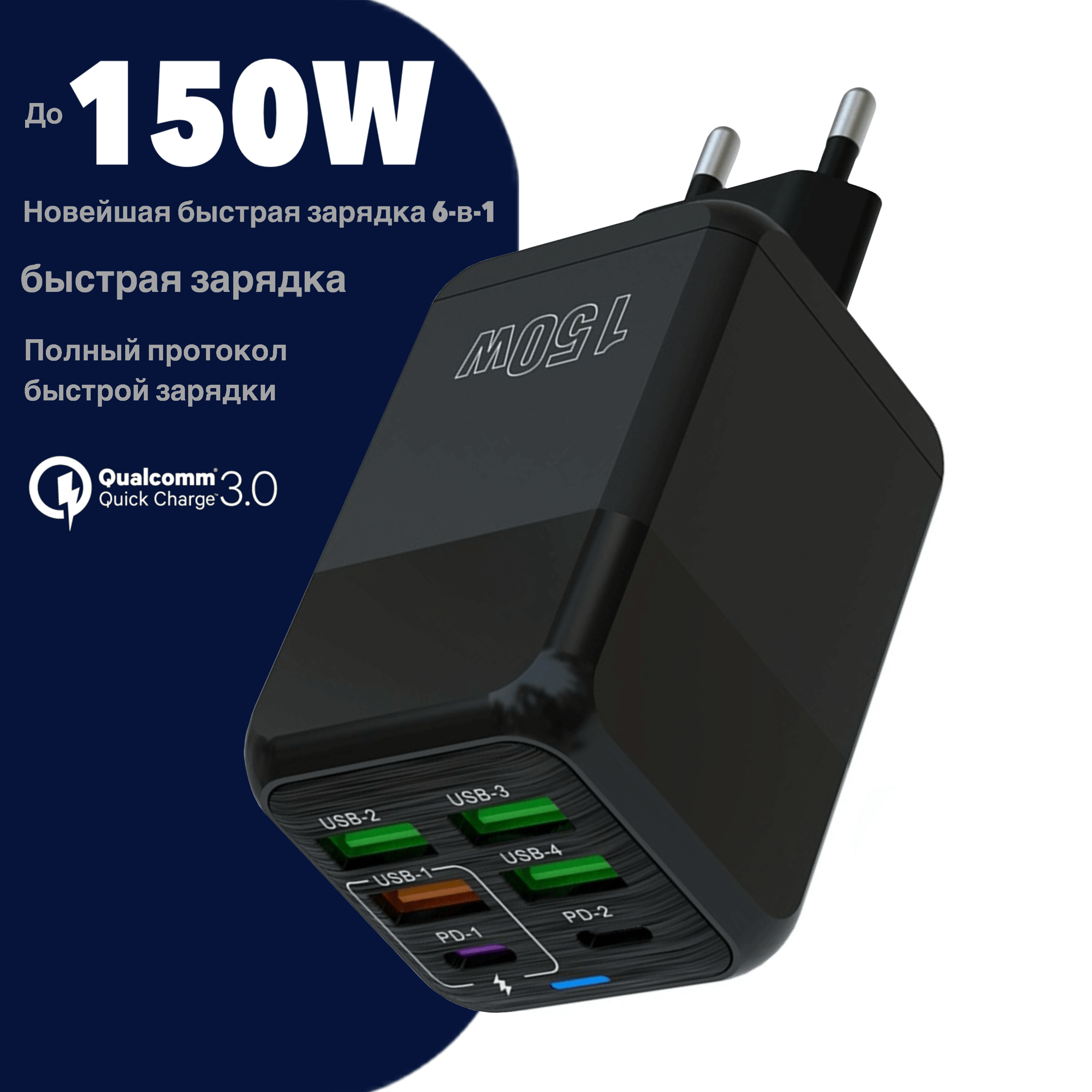 Мощное зарядное устройство (адаптер) 150W 5V для смартфонов Iphone и Android на 6 портов USB Type-C - с индикатором интересное: