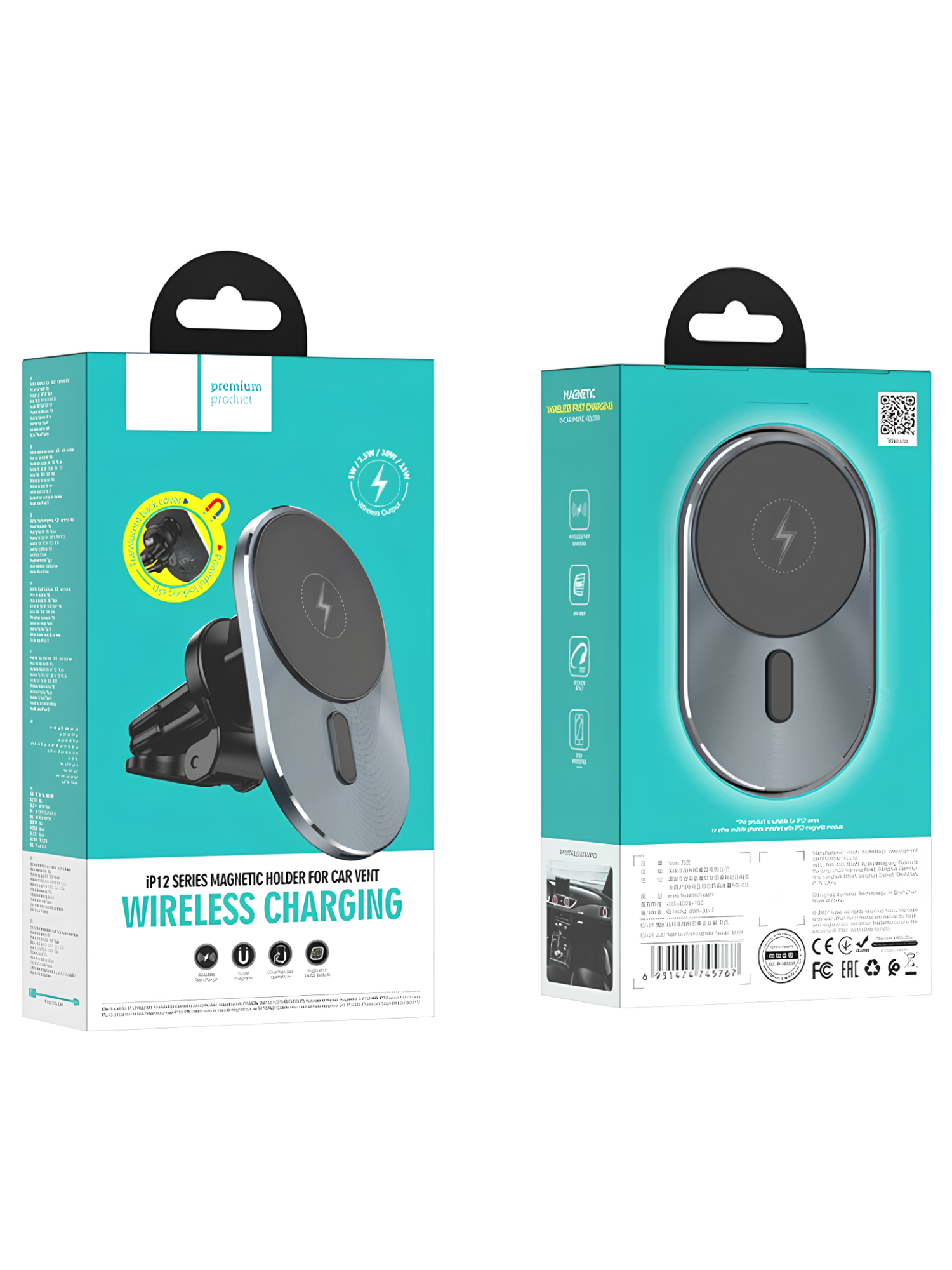 Купить Держатель для смартфона в машину HC CA91, с беспроводной зарядкой на прищепке магнитный, серебро
