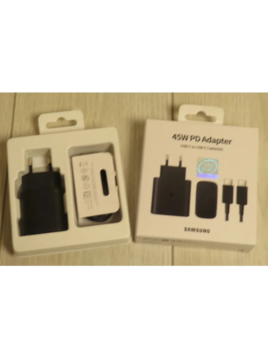 Зарядное устройство Samsung, USB PD 3.0, Type-C, с кабелем, 45 Вт, цвет черный интересное: