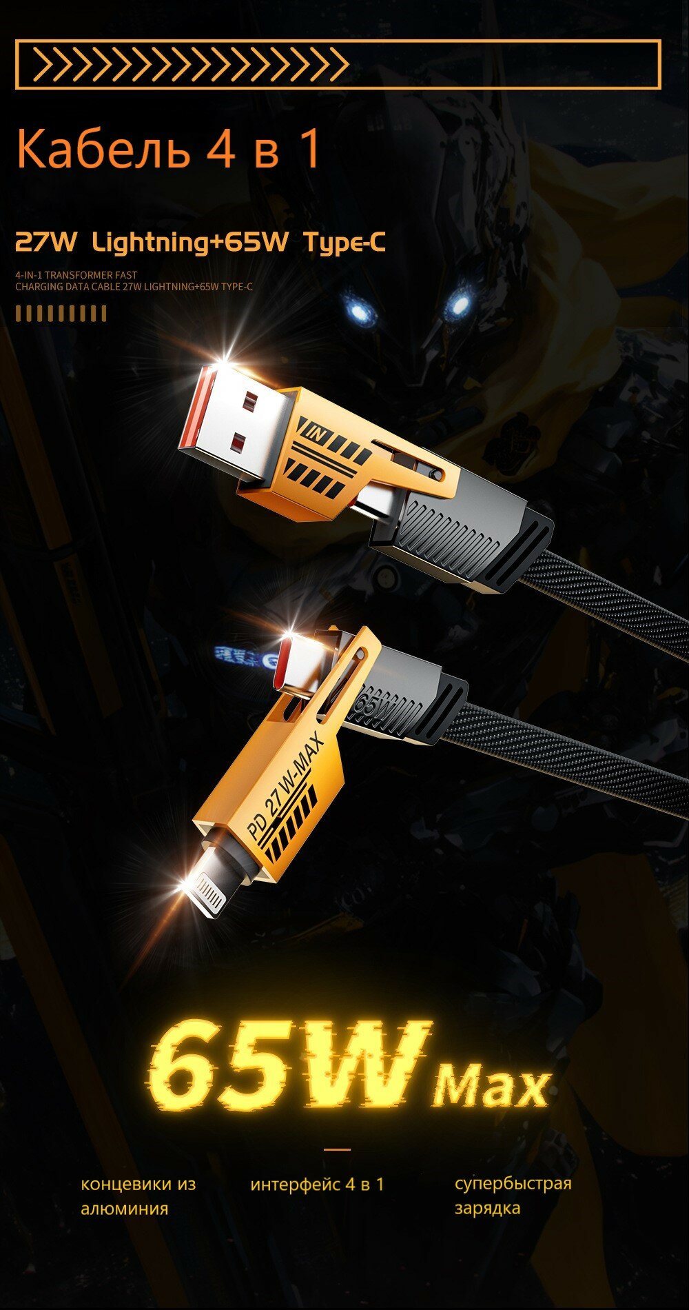Купить Кабель 4-в-1 для iPhone, iPad, AirPods и Android с быстрой зарядкой