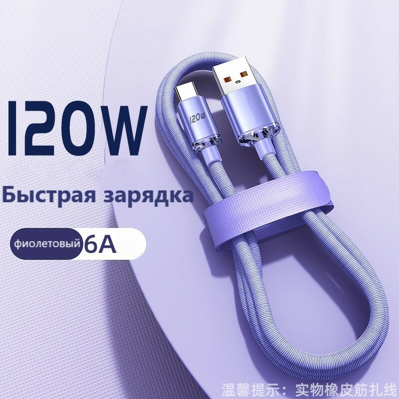 Зарядка для iPhone/iPad/AirPods/AirPods Pro/Lightning/USB/120W/1 метр/Фиолетовый