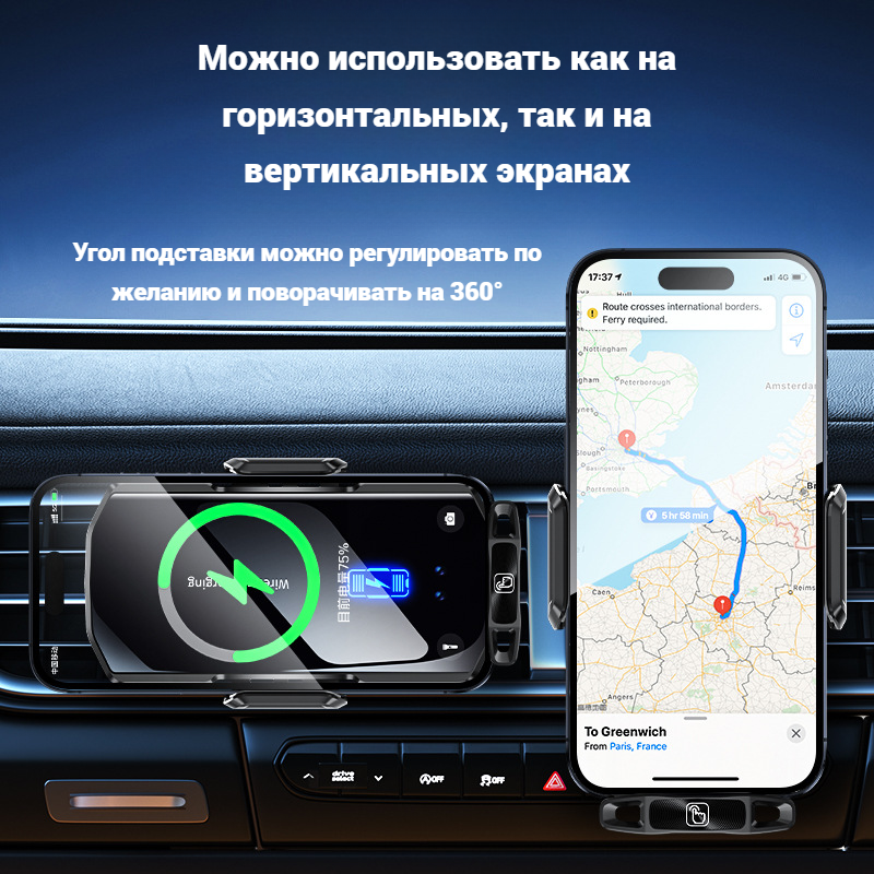 Автомобильное беспроводное зарядное устройство F4+ для мобильного телефона, черный