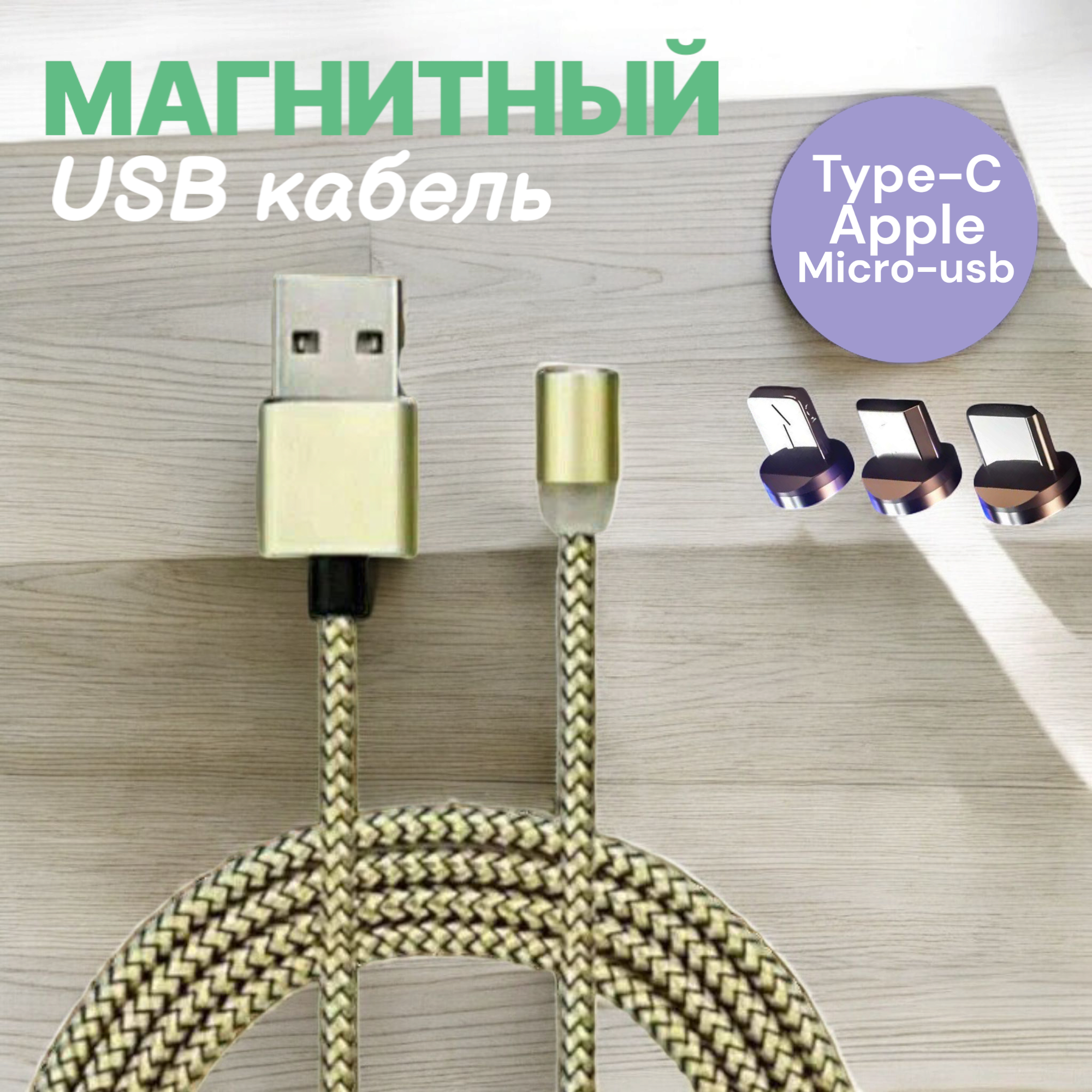 Купить Кабель зарядки магнитный , 1 м, USB Type-С/Lightning/micro USB, 5 Вт, защита от перенапряжений, золотистый