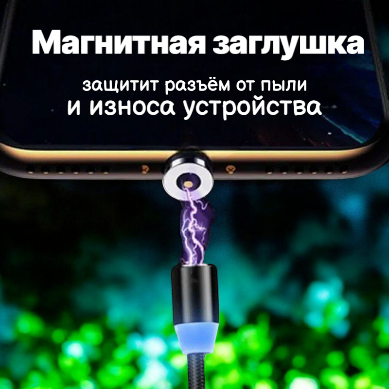 Магнитный зарядный кабель USB Type-C, Lightning, MicroUSB, 1 м, черный