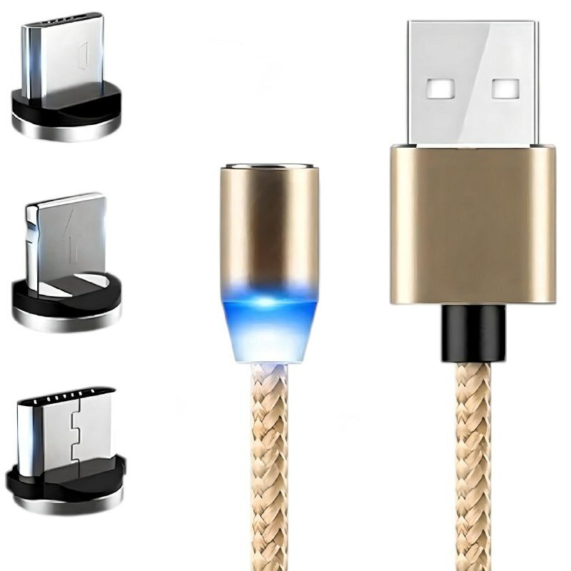 Купить Магнитный зарядный кабель VVO USB Type-C, Lightning, MicroUSB, 1 м, золотой