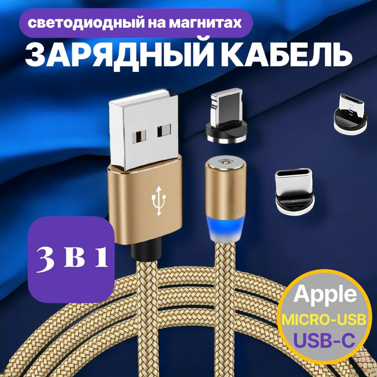 Магнитный зарядный кабель VVO USB Type-C, Lightning, MicroUSB, 1 м, золотой интересное: