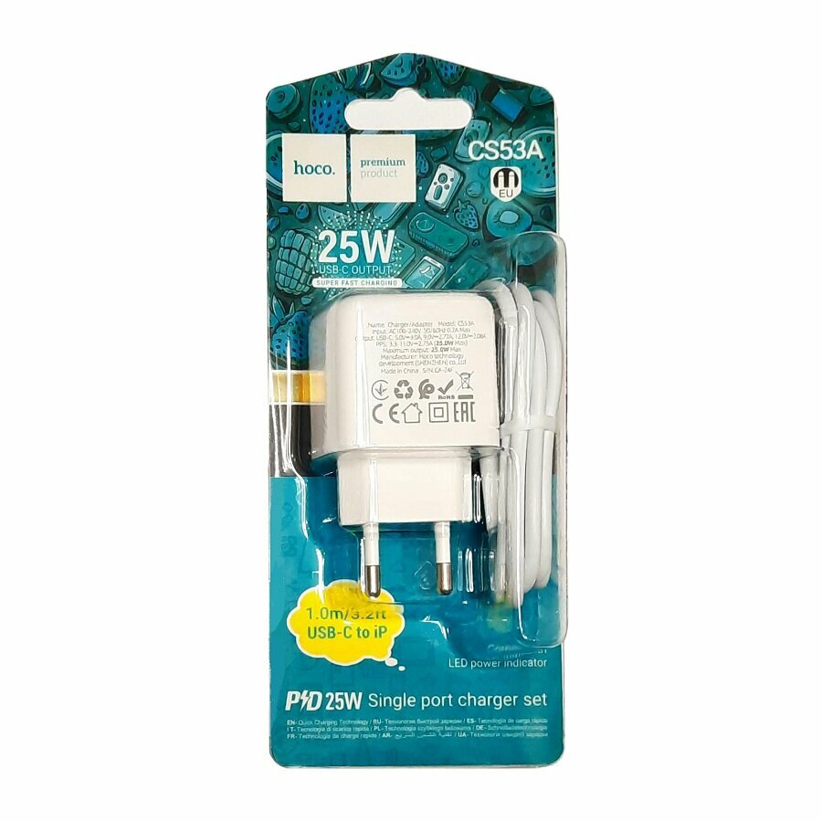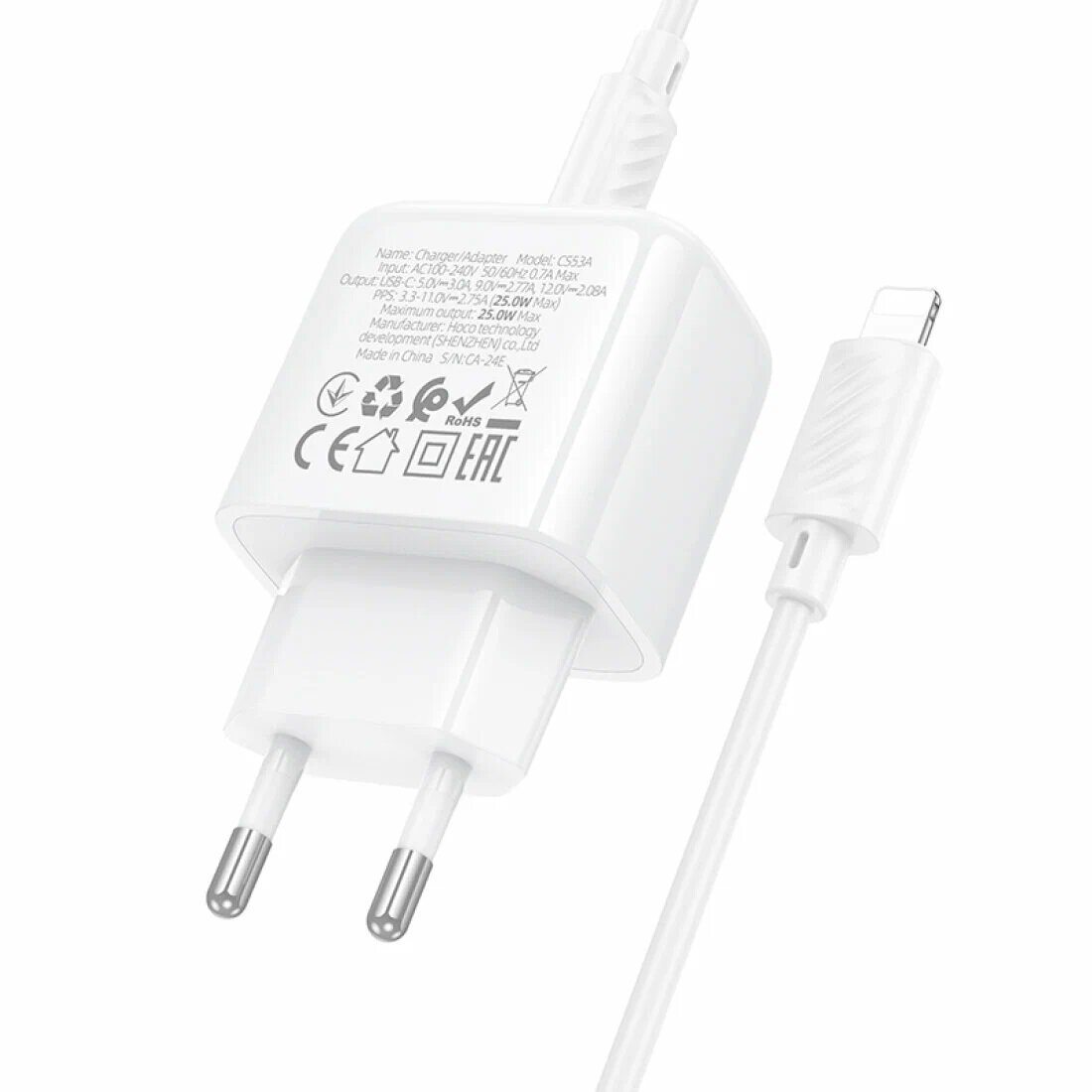 Купить Сетевое зарядное устройство Hoco CS53A 25W с кабелем Type-C to iP, белый