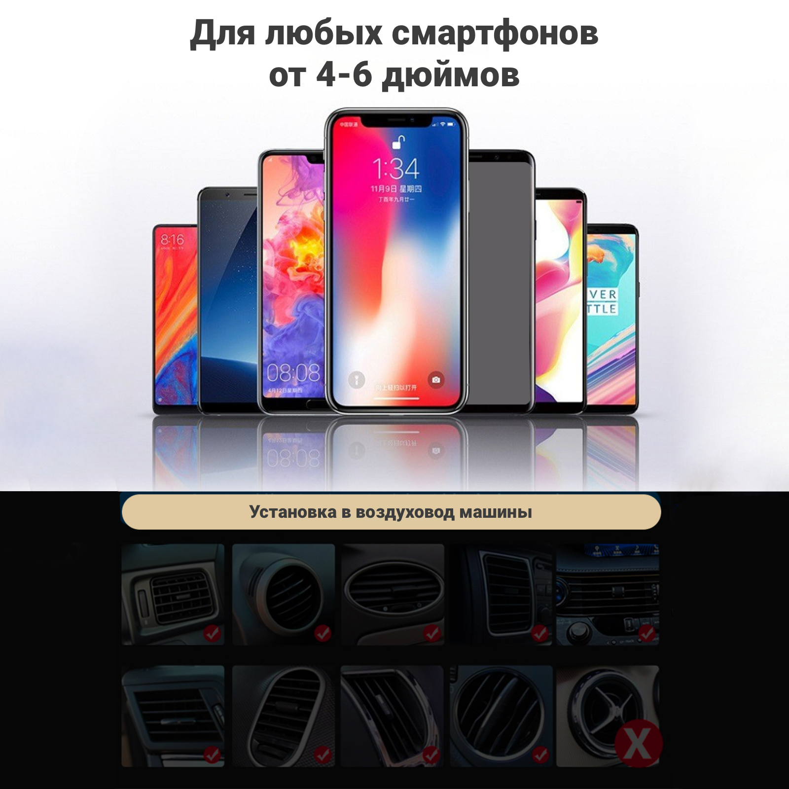 Держатель для телефона в машину WFC5, беспроводная зарядка сенсорное открытие-закрытие, черный