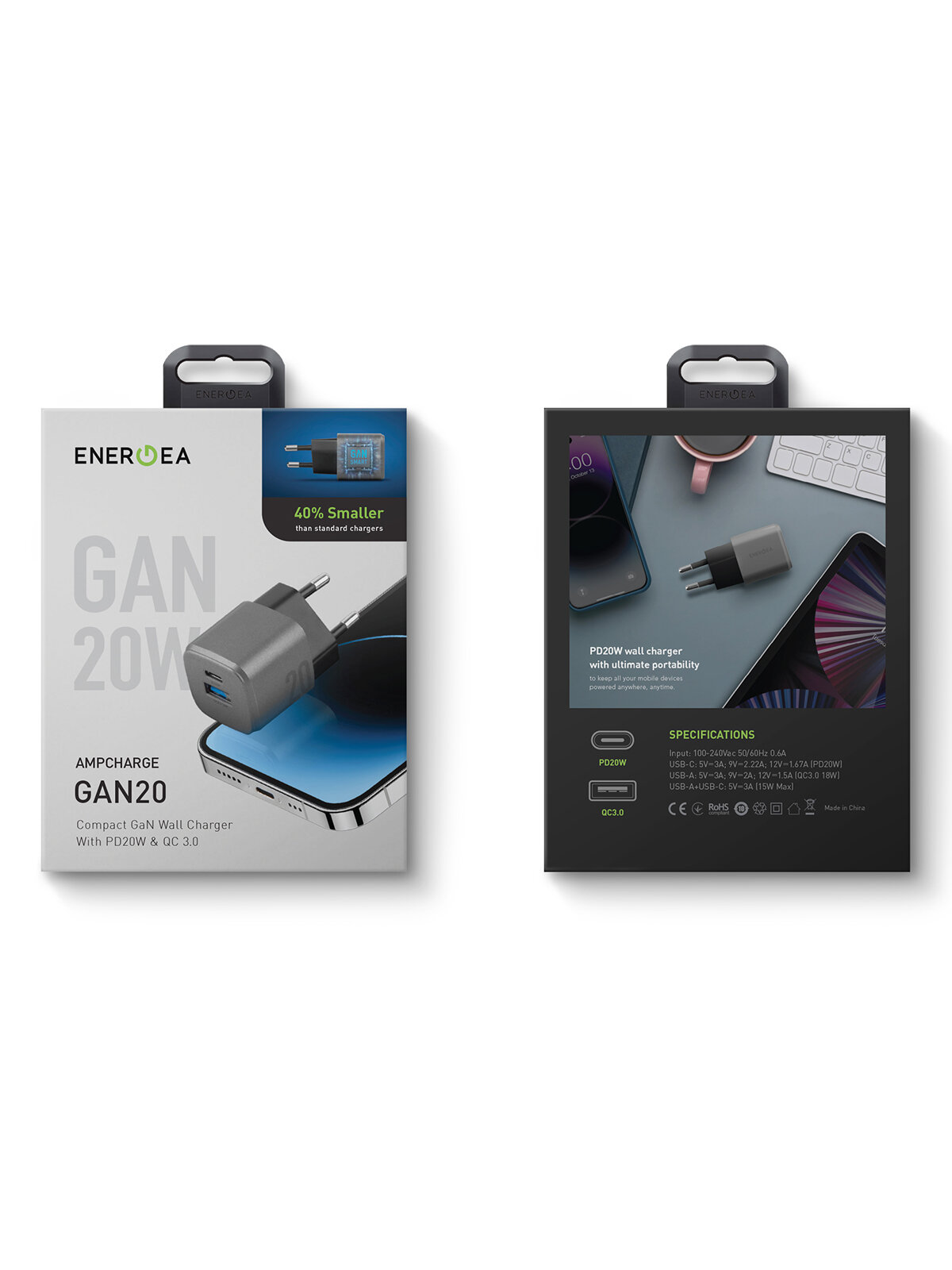 Купить EnergEA СЗУ Ampcharge GaN20, USB-C PD20 + USB-A QC18 total 20W Gunmetal