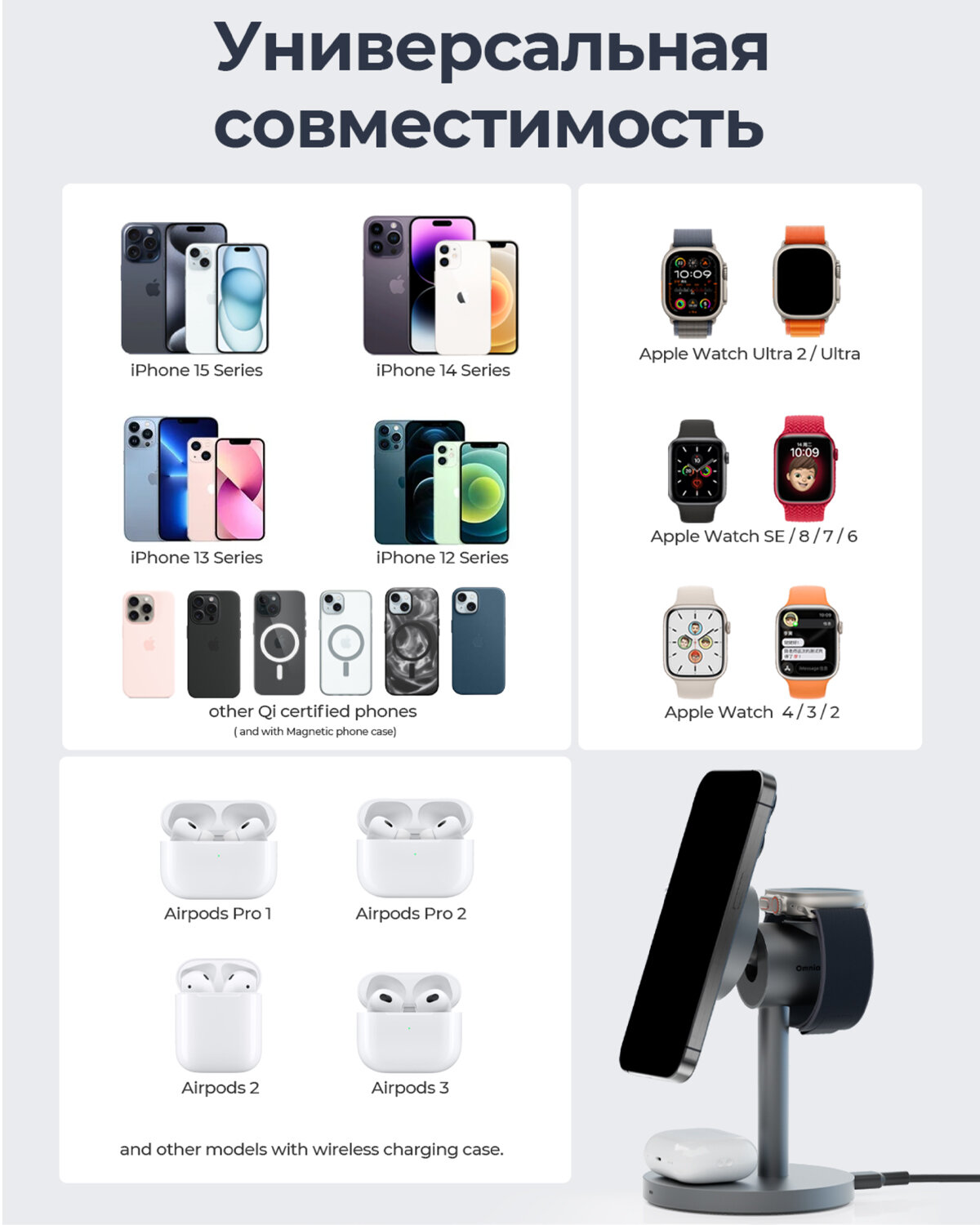 Беспроводное зарядное устройство Aukey, MagFusion Qi2, 3 в 1, (LC-MC311) интересное: