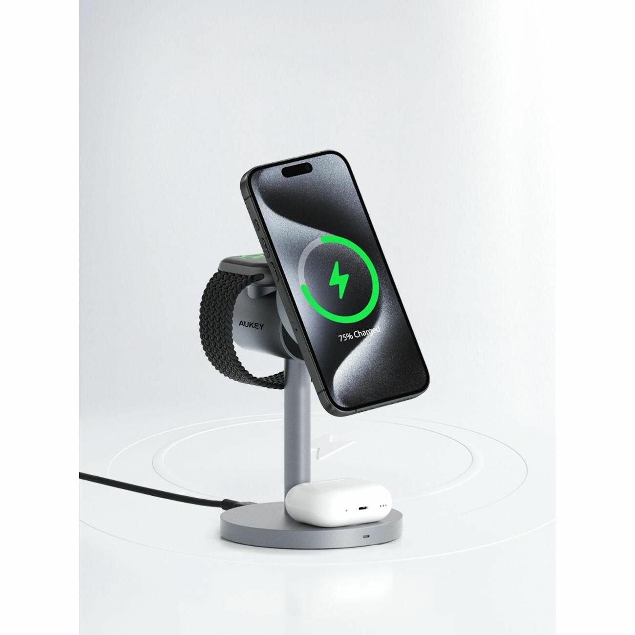 Купить Беспроводное зарядное устройство Aukey, MagFusion Qi2, 3 в 1, (LC-MC311)