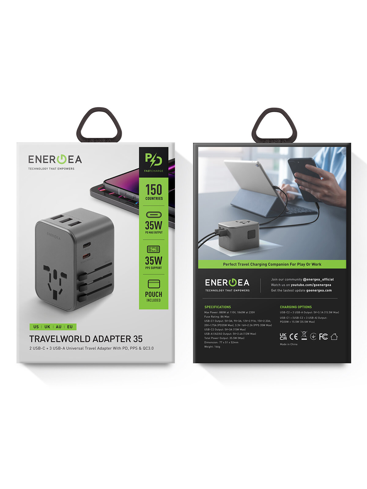 Купить EnergEA СЗУ Travel World adapter 35, 2USB-C + 3USB-A, PD35W Gunmetal