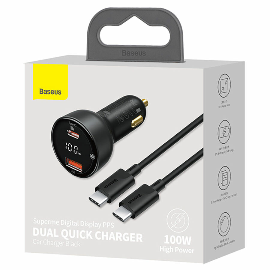 Купить АЗУ Baseus Superme Digital Display PPS Dual Quick Charger Car Charger Black(with АЗУ Baseus Xiaobai series fast charging Cable Type-C to Type-C 100W(20V/5A) 1m Black)
