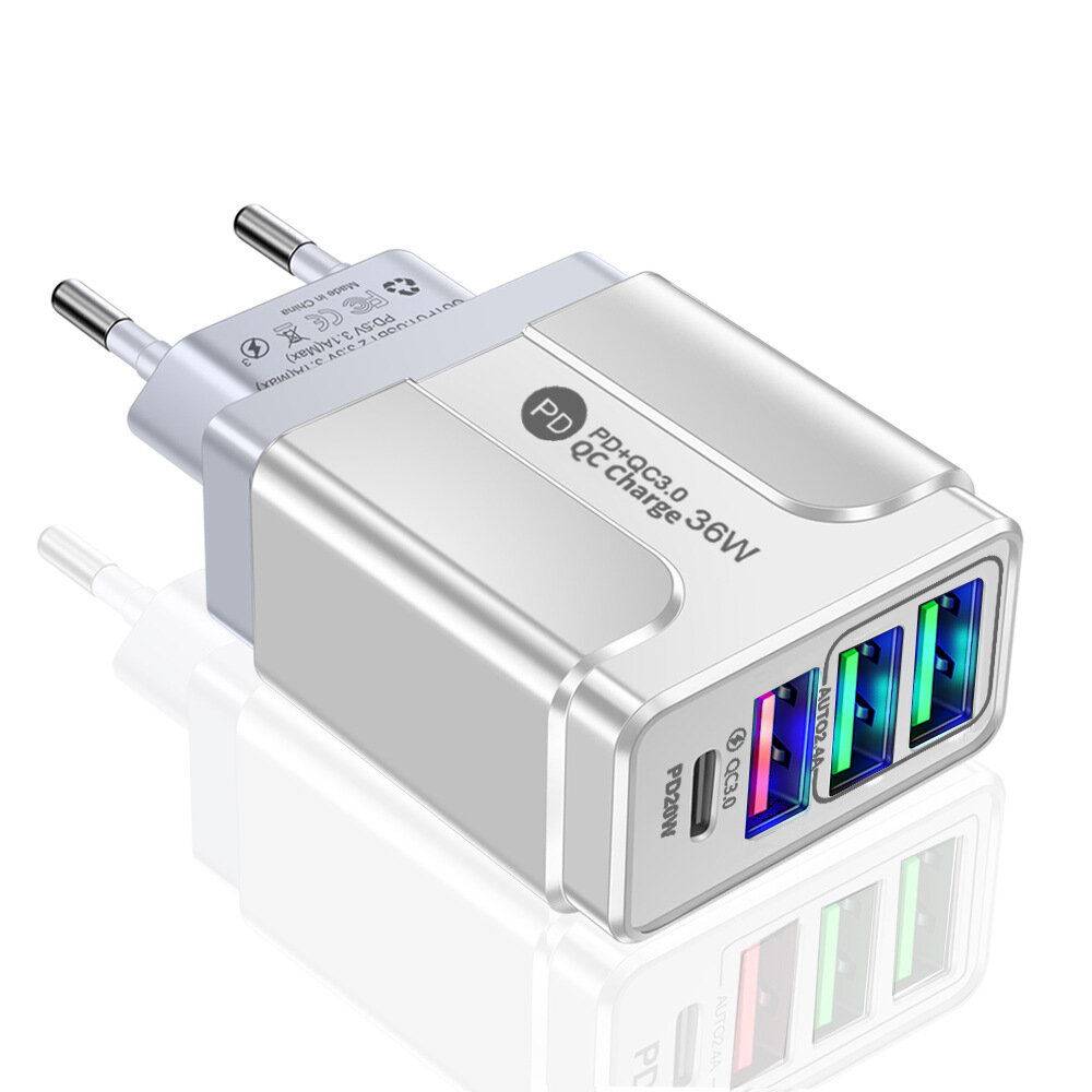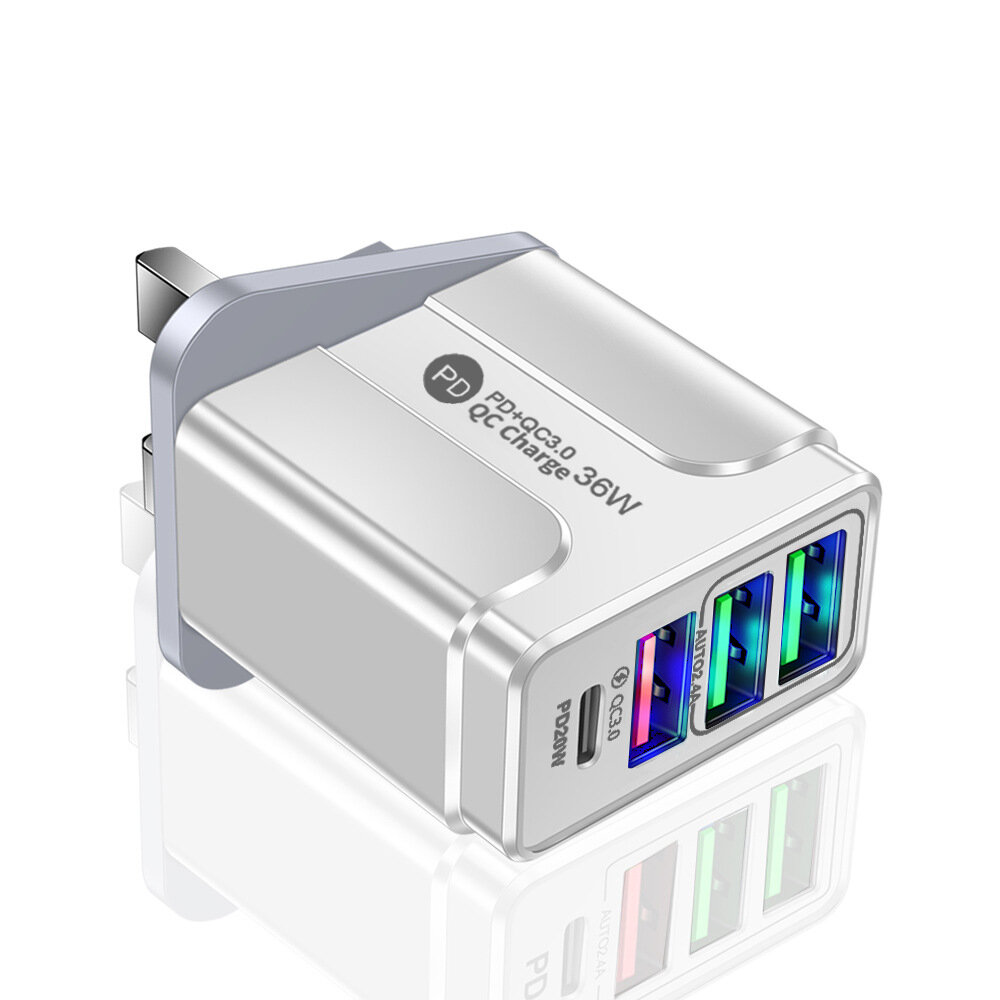 Зарядное устройство PD36W, Type-C, 3 USB, CE FCC UKCA, быстрая зарядка, белый