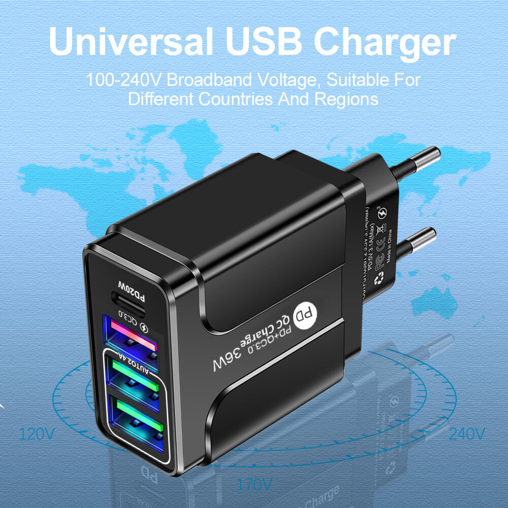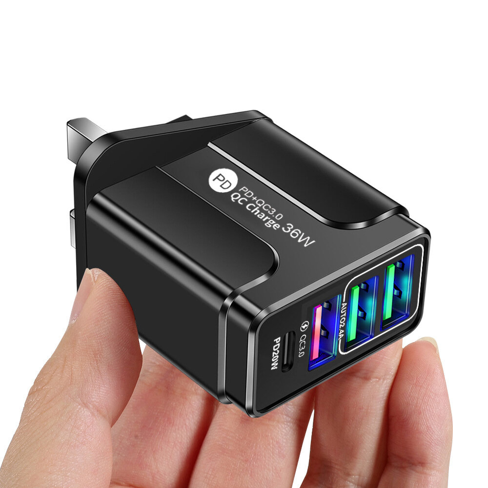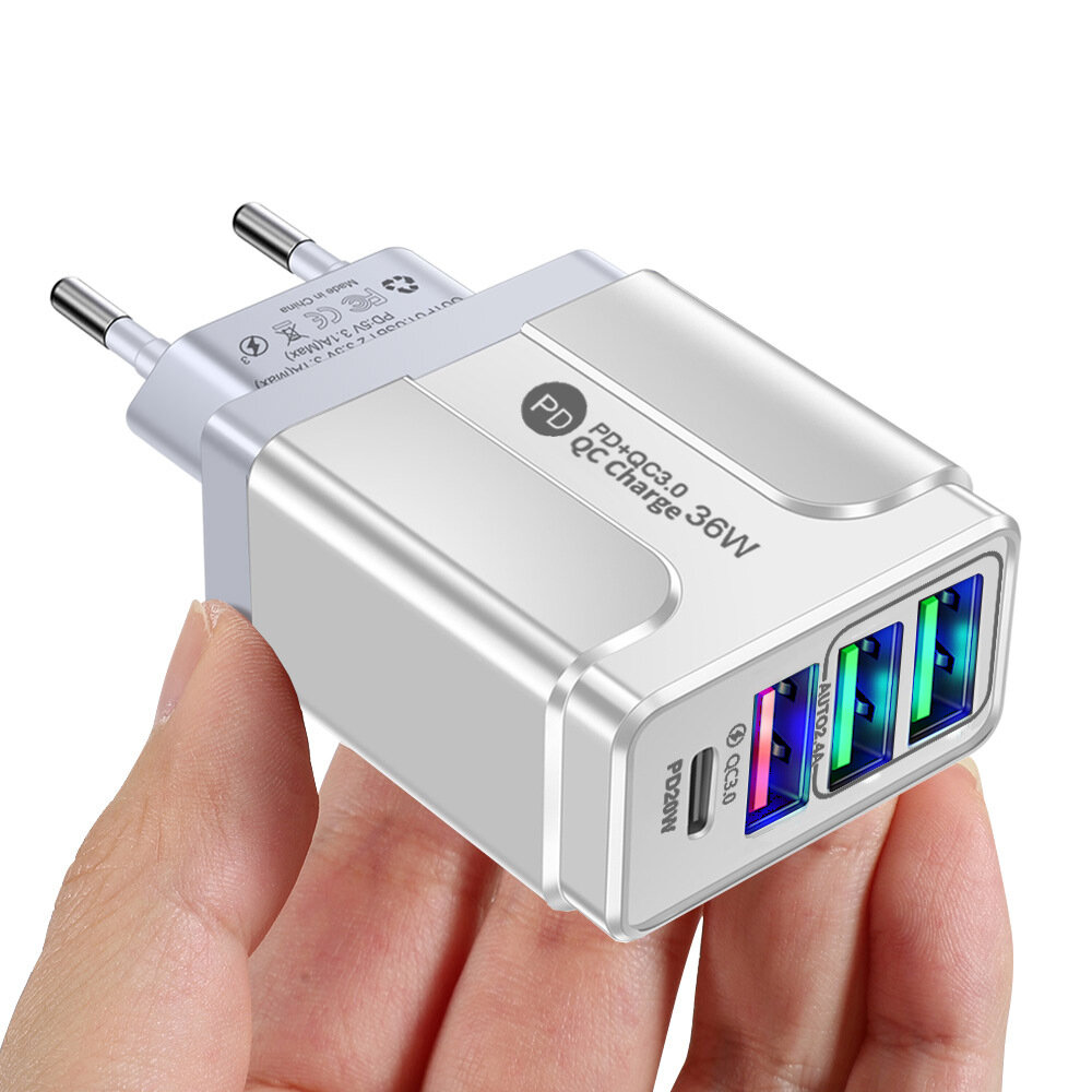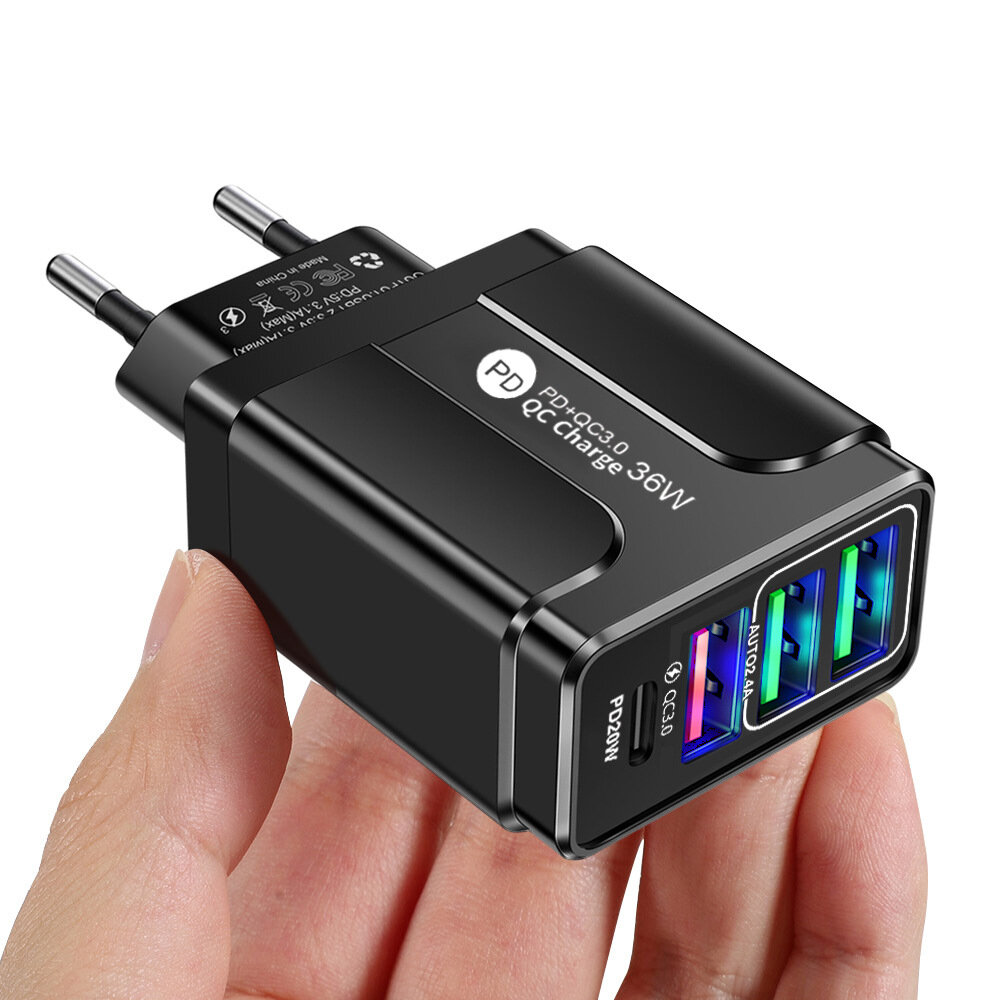 Зарядное устройство PD36W, с 3 USB, Type-C, CE FCC UKCA