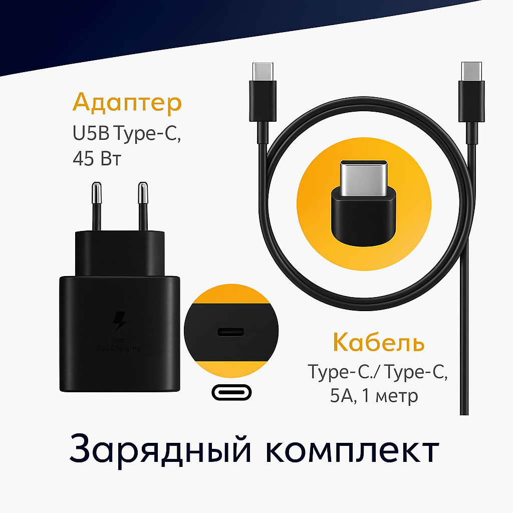 Зарядное устройство 45W Samsung TA845 Очень быстрая зарядка + провод Type-C (Черный) интересное: