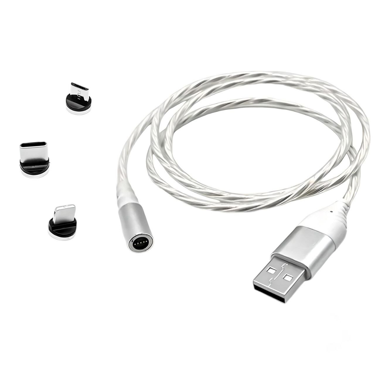 Купить Кабель для мобильных устройств 3 в 1 с магнитным разъёмом, светодиодный, белый