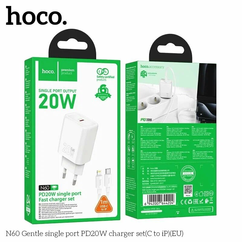 Сетевое зарядное устройство Hoco N60 PD20W с кабелем Type-C to Lightning, GaN, белый интересное: