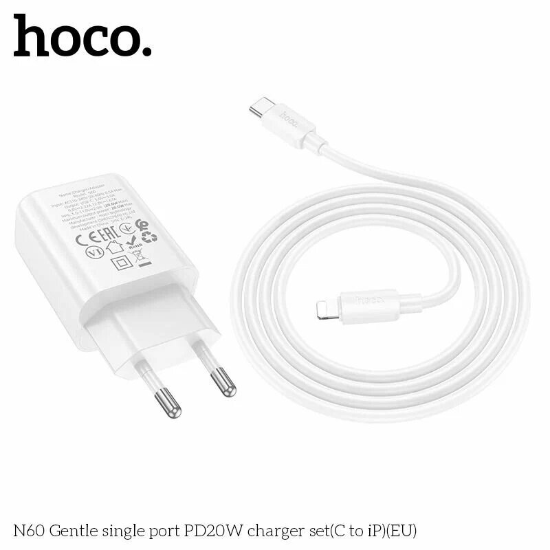Купить Сетевое зарядное устройство Hoco N60 PD20W с кабелем Type-C to Lightning, GaN, белый