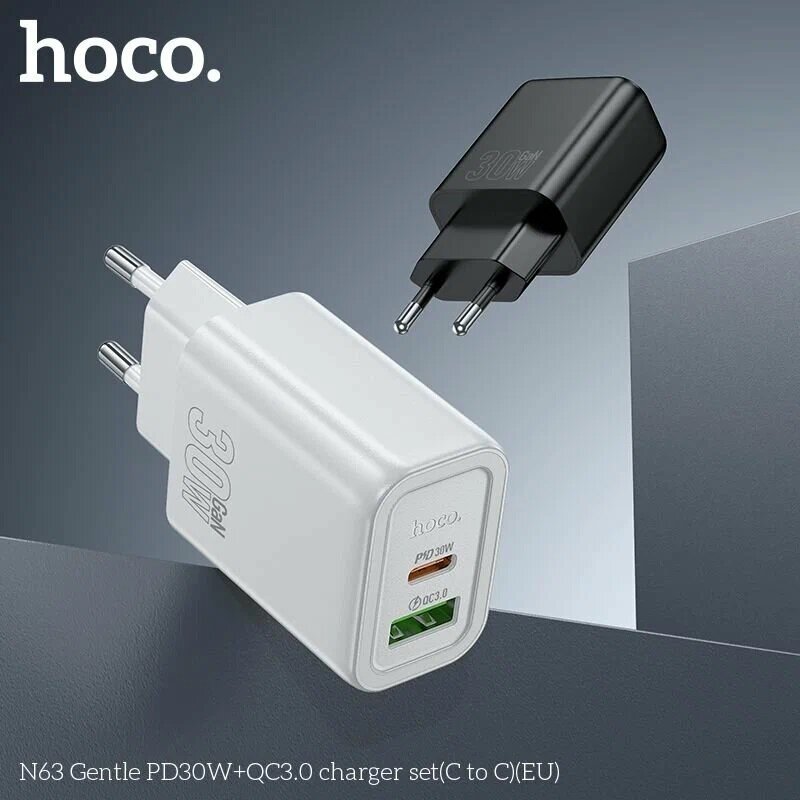 Сетевое зарядное устройство Hoco N63 PD30W+QC3.0 с кабелем Type-C to Type-C, GaN, белый интересное: